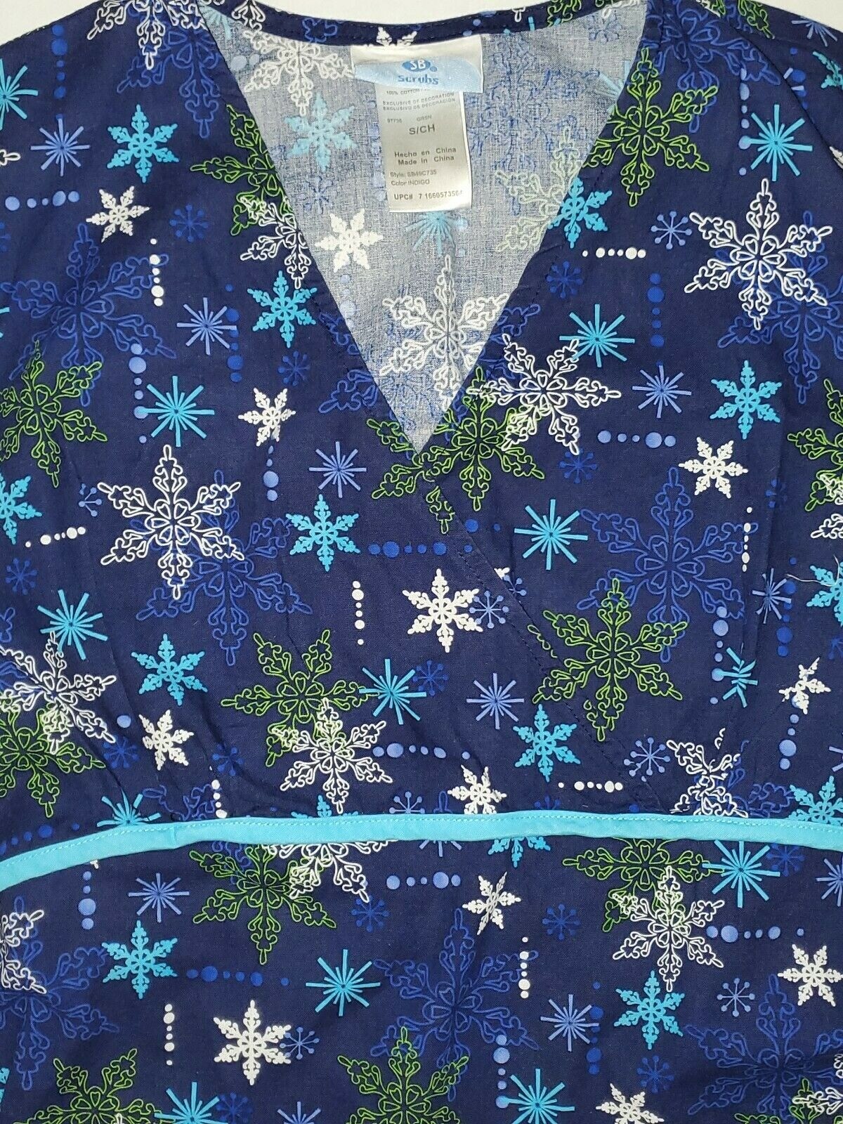 SB Scrubs Women's Mock Wrap Scrub Top Size Small Blue with Snowflakes Nurse