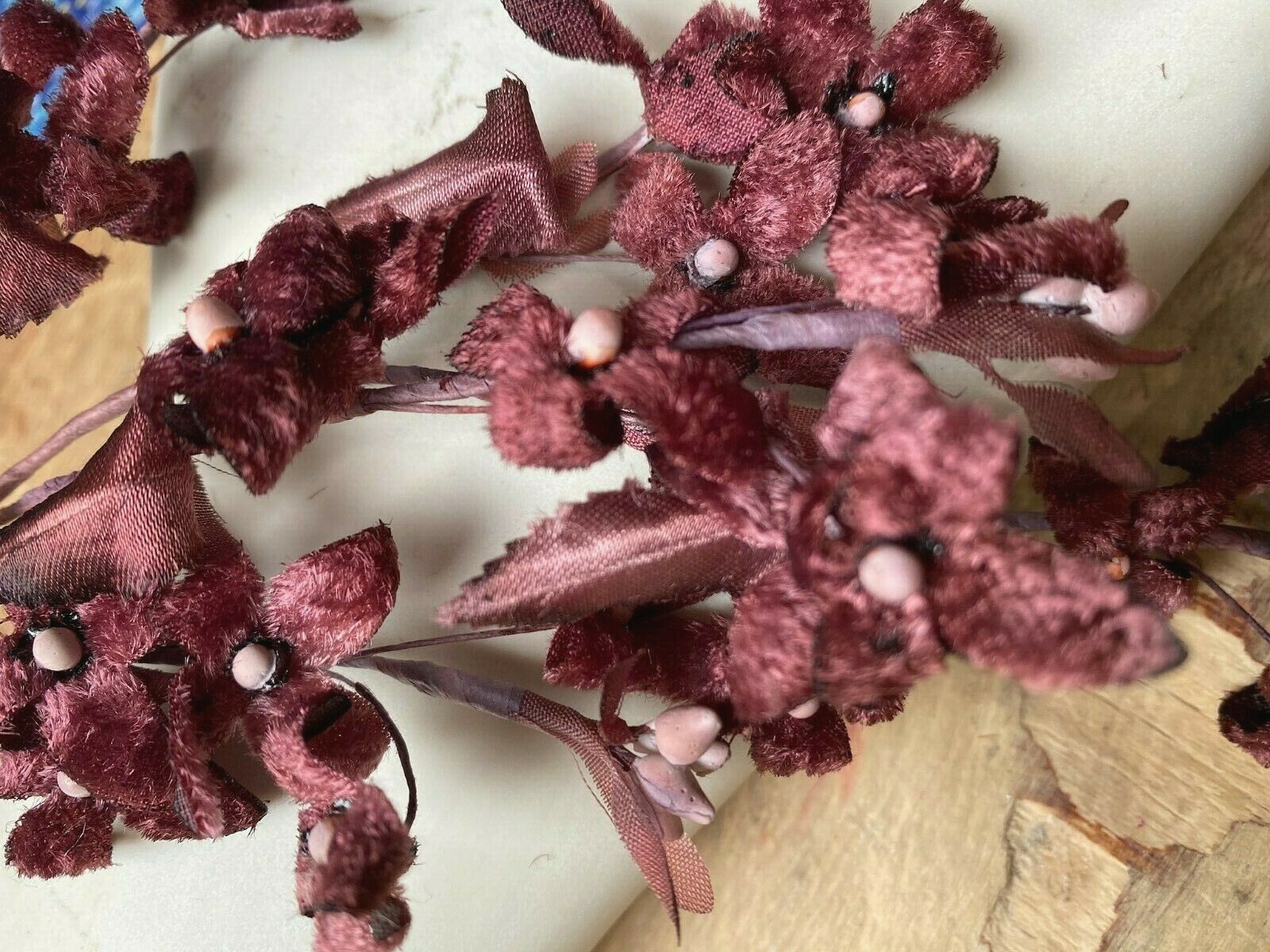 как выглядит vintage velvet silk millinery flower black cherry 1 spray made in Japan фото