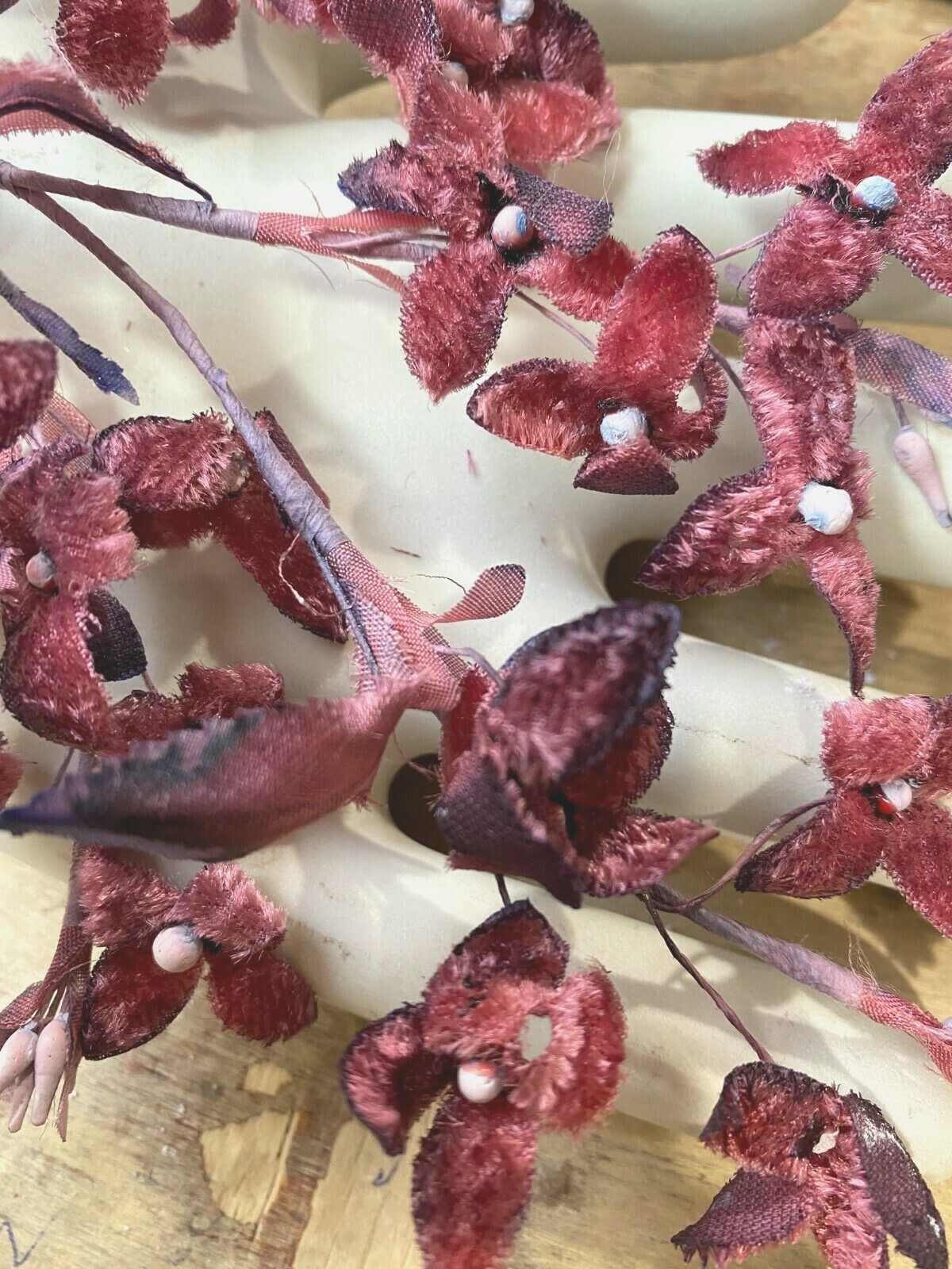 как выглядит vintage velvet silk 1940s millinery flower 1 spray Japan cherry rose shaded фото