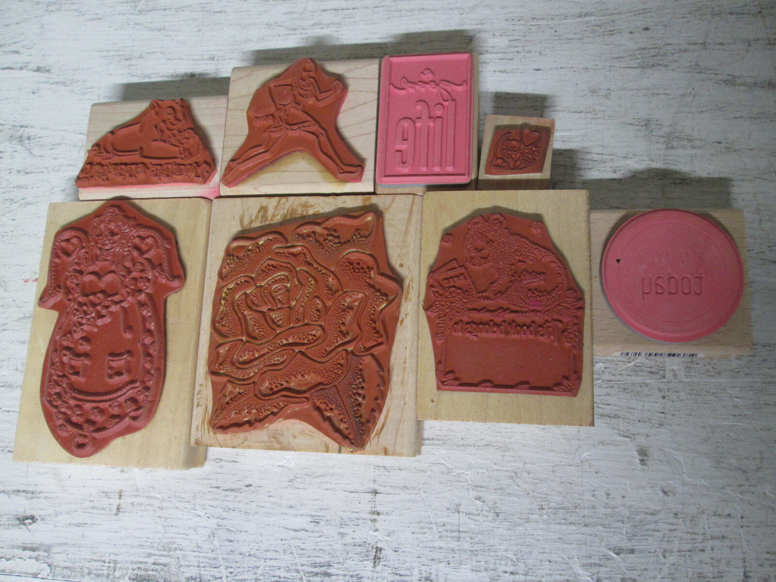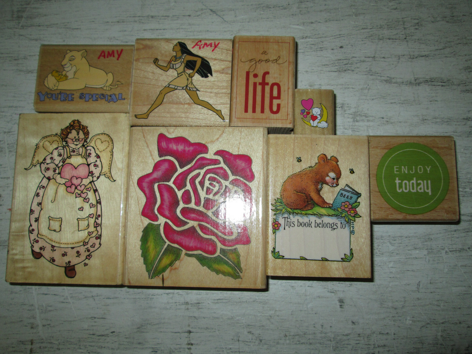 Lot of 8 Wooden Scrapbooking Rubber Stamps, Assorted Brands Sizes, GUC