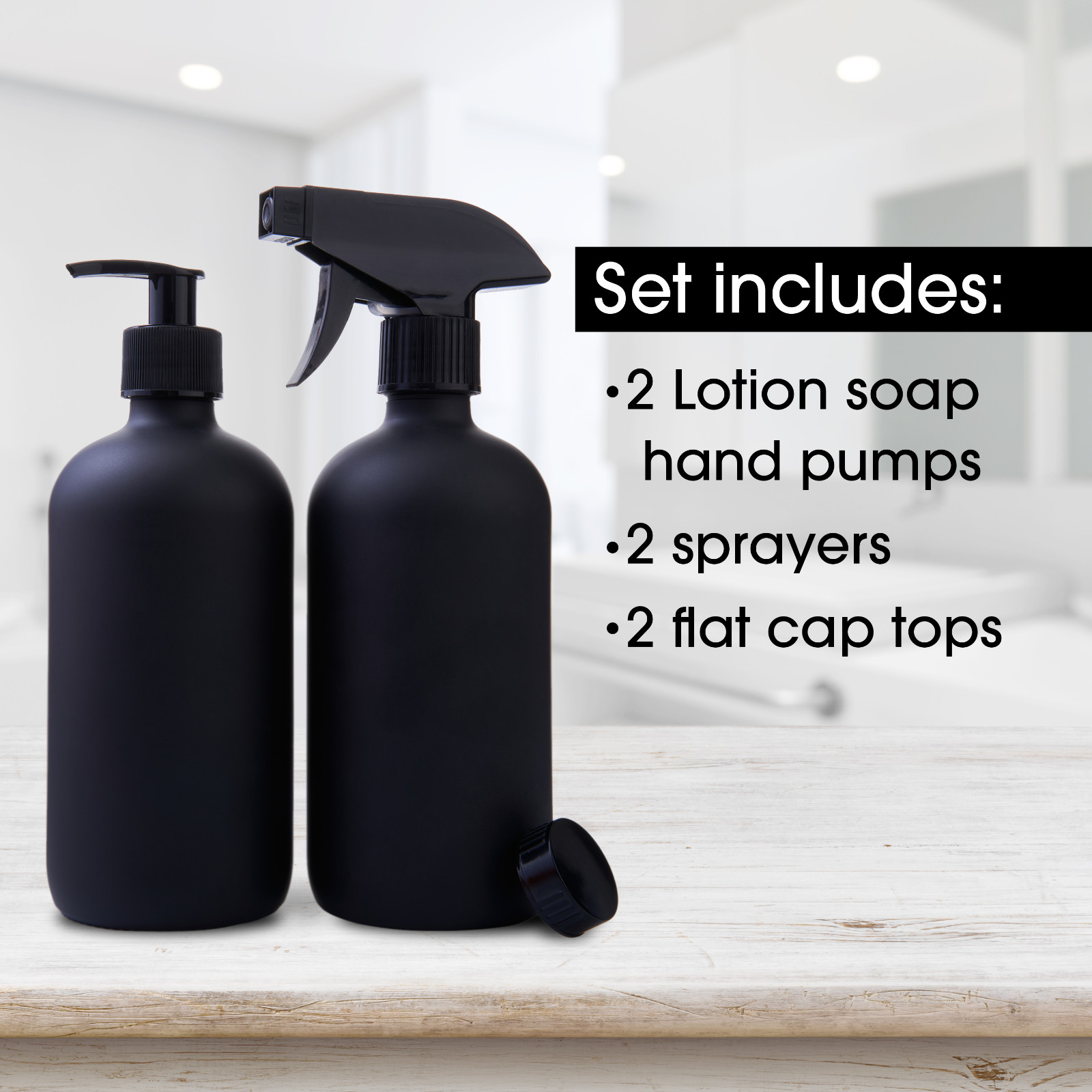 Black Coated 16oz Boston Round Glass Bottle- 2 Pack