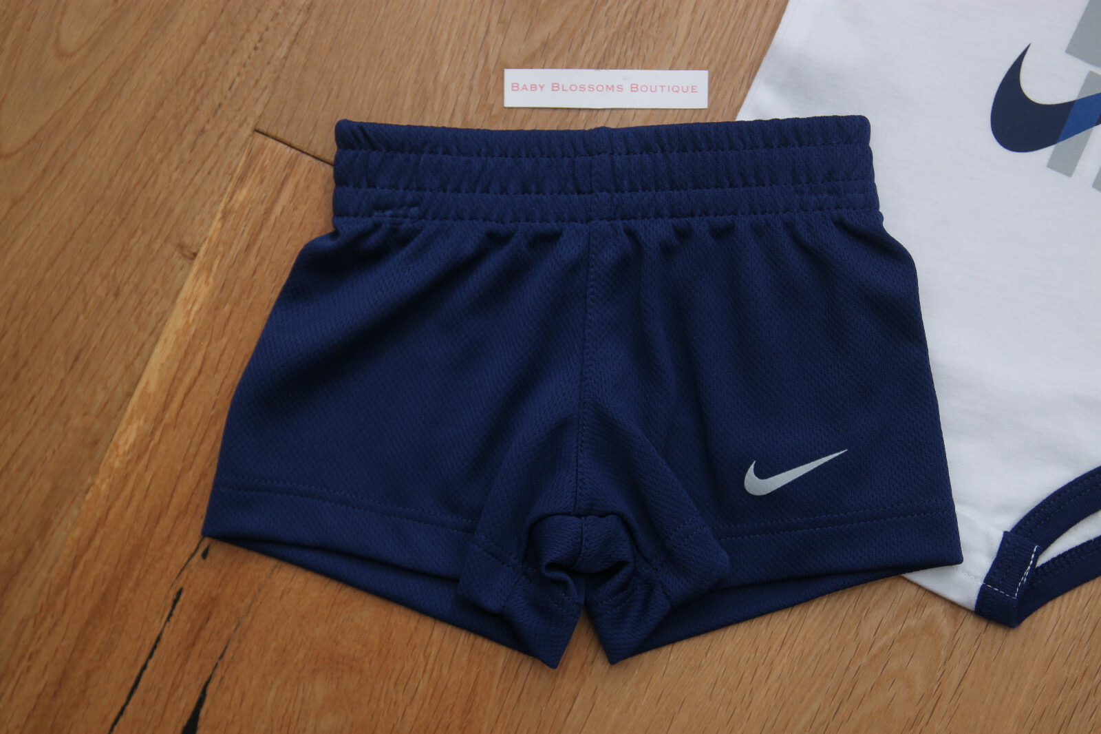 Nike Baby Boy 2 Piece Bodysuit Shorts Set White, Navy Blue Gray 3M