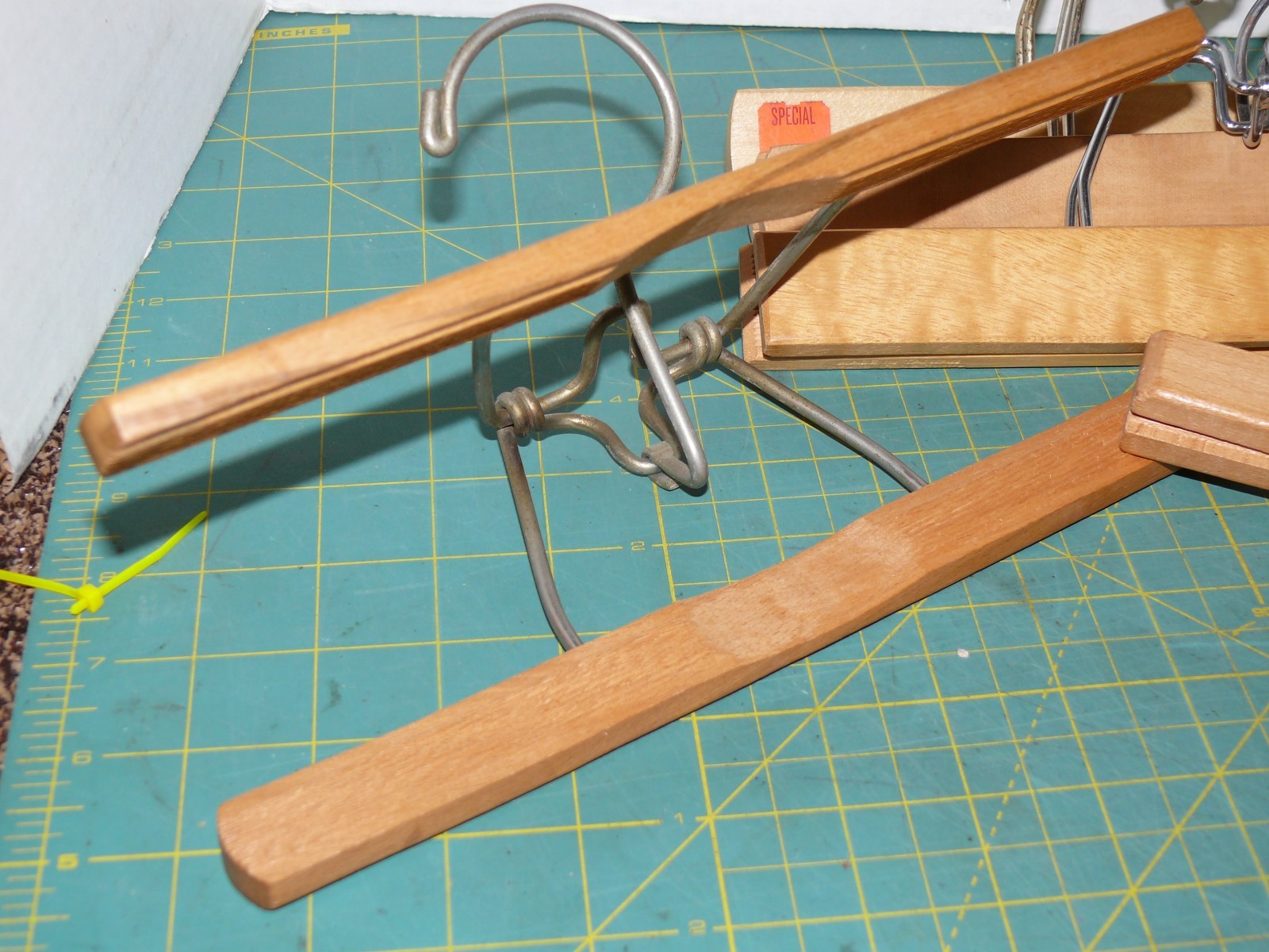 Vintage Wood Pants Skirt Clamp Hangers 10 Long, SET OF 5 WOOD HANGERS LOT 105