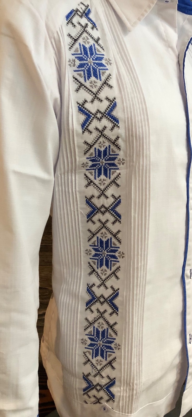 Mexican Mens Wedding Guayabera Shirt Long Sleeve Elegant Royal Blue Embroidery