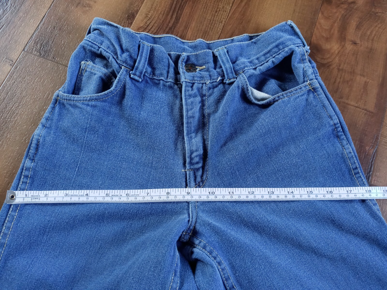 Vintage High Waisted Blue Bell Bottom Flare Jeans with Star Embroidered Pocket