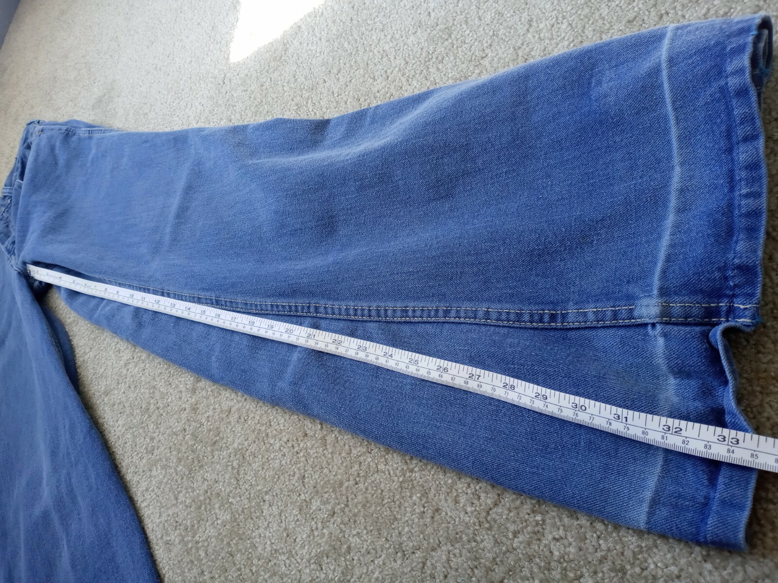 как выглядит Vintage High Waisted Blue Bell Bottom Flare Jeans with Star Embroidered Pocket фото