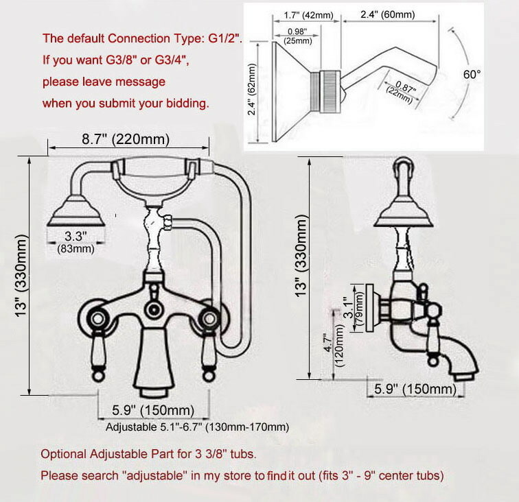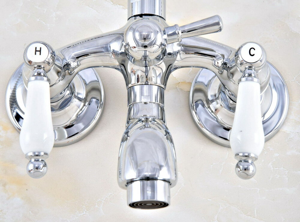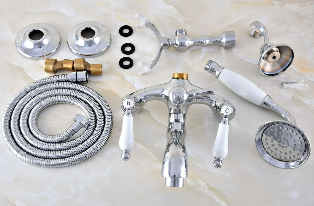 Polished Chrome Bathtub Clawfoot Faucet Mixer Tap Telephone Handheld Shower