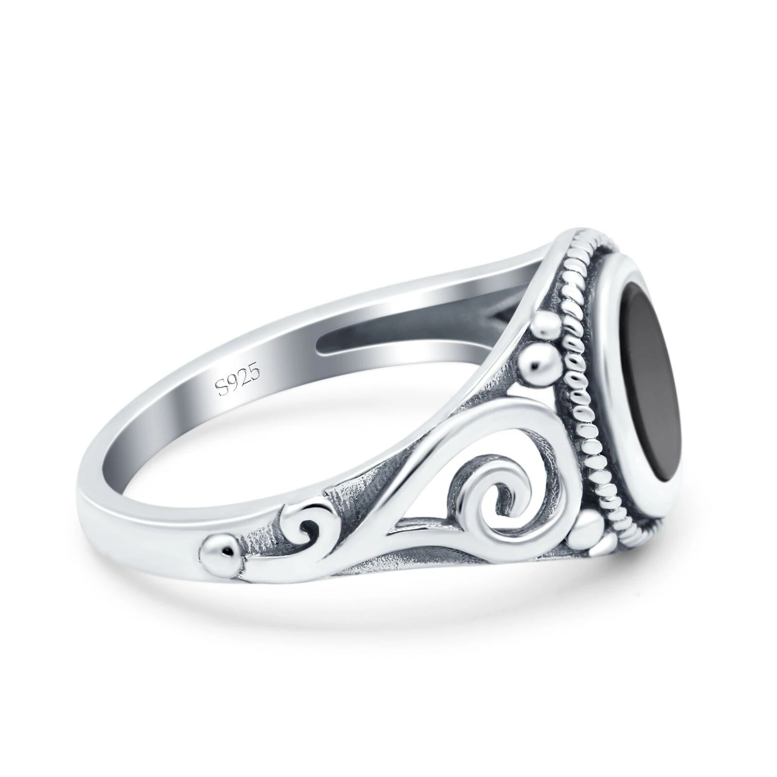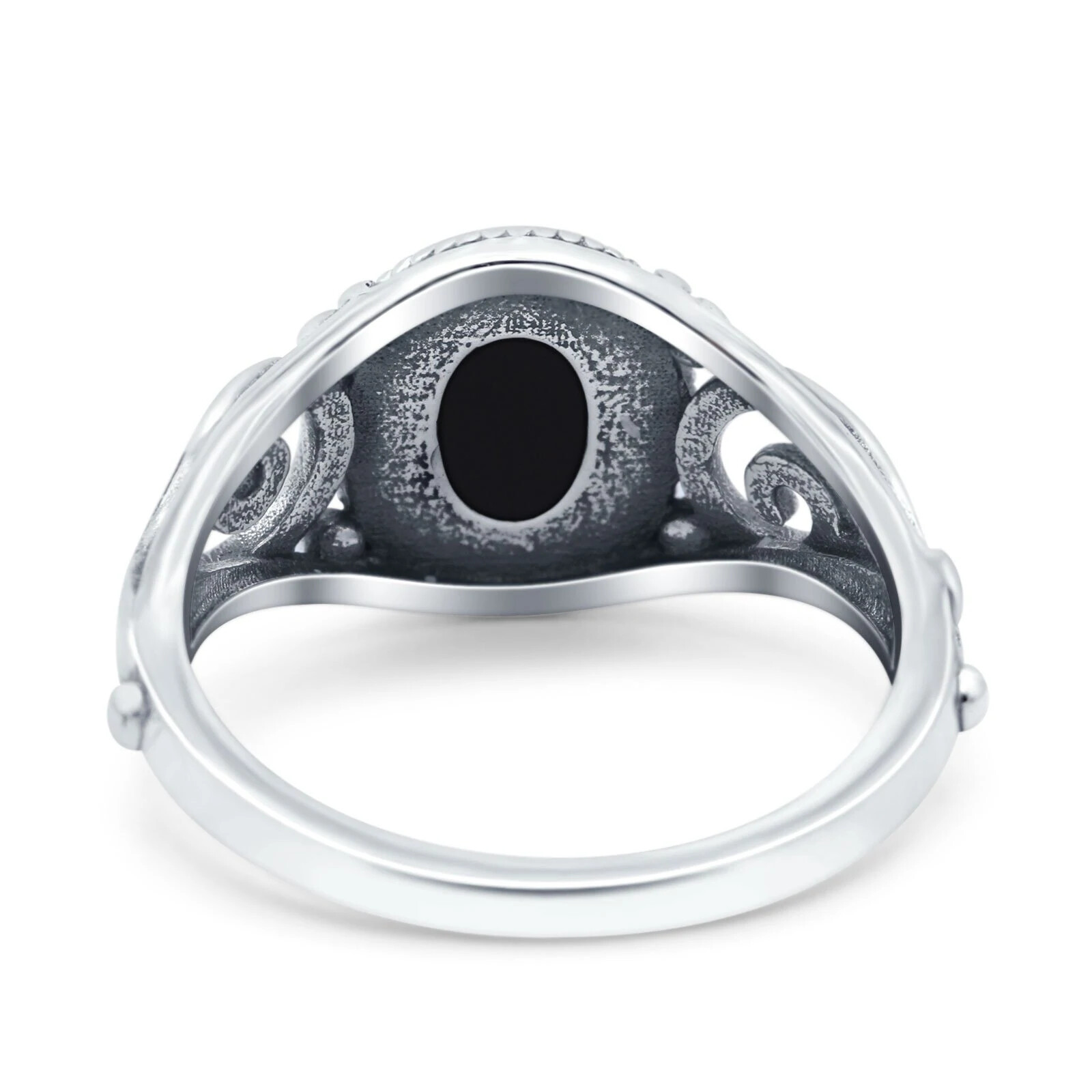 Solitaire Halo Wedding Ring Oval Simulated Black Onyx 925 Sterling Silver