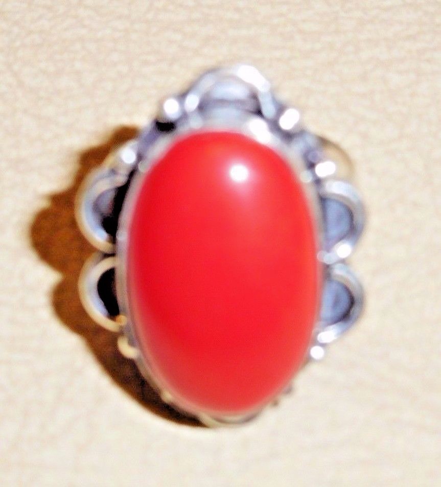 ARTISAN HANDCRAFTED OVAL RED CORAL GEMSTONE 925 SILVER RING SIZE 8.25