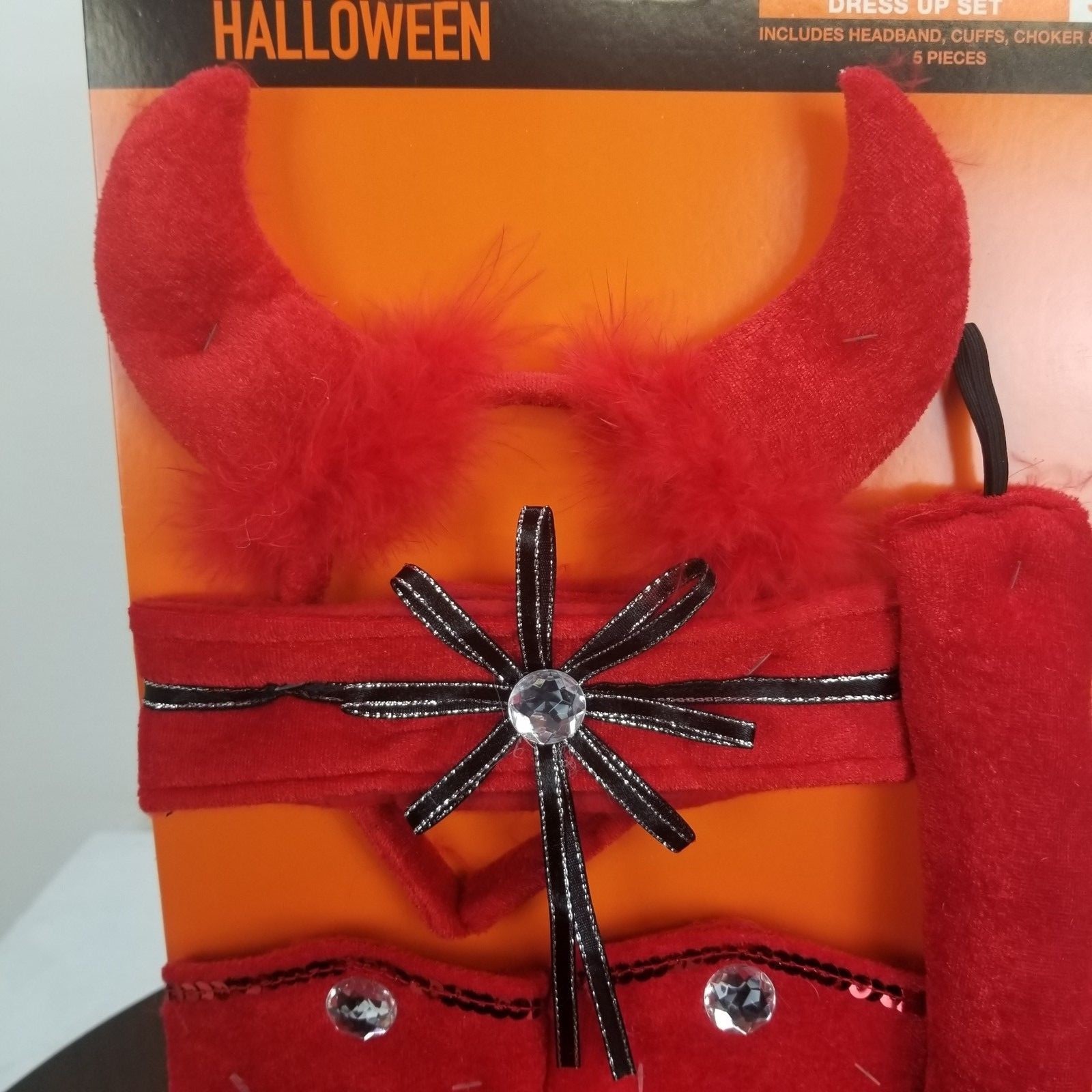 как выглядит Devil Dress Up Set 5 Piece Red Horn Headband Cuffs Choker Tail Halloween фото