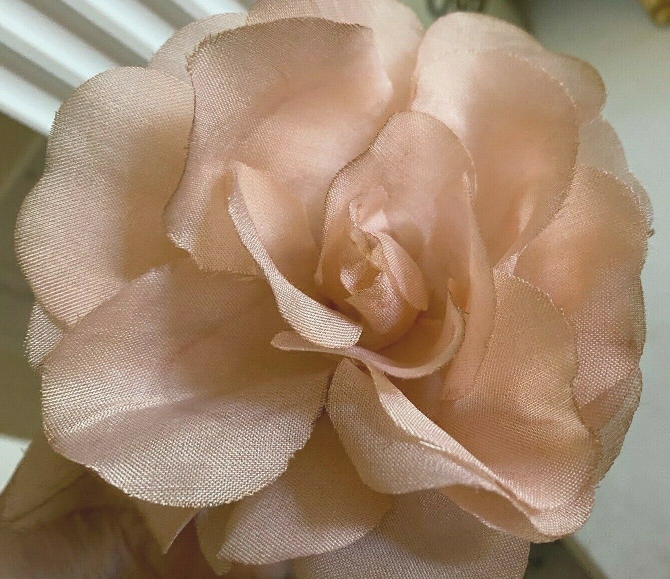 как выглядит vintage millinery 1950s flower rose leaves 4.5" peach silk 1pc Czechoslovakia фото