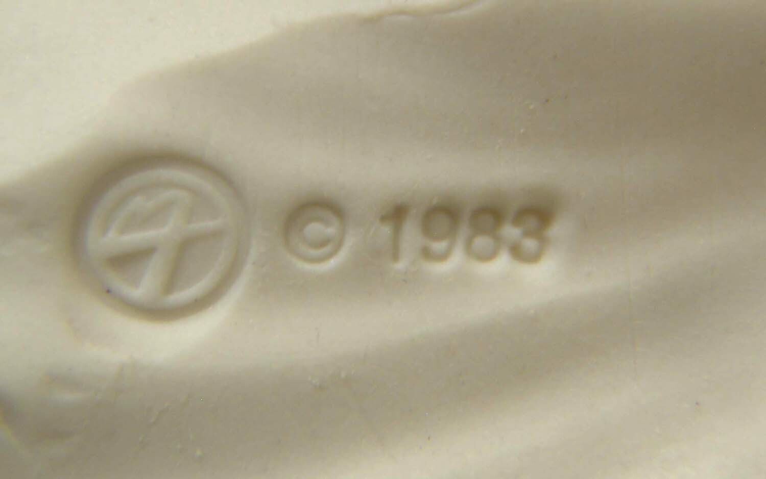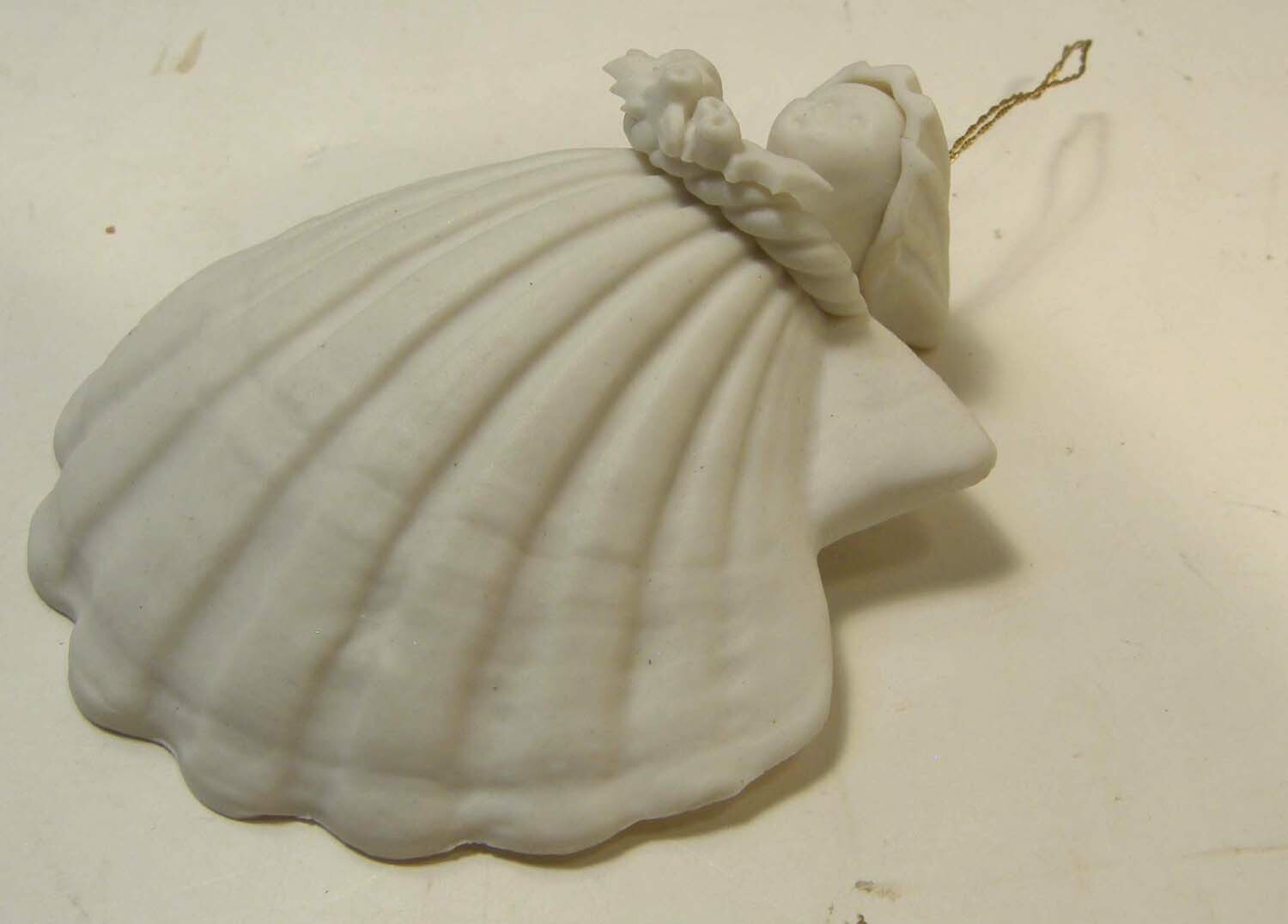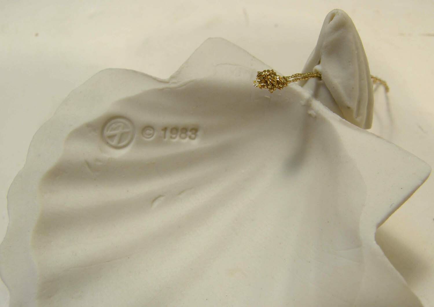 MARGARET FURLONG BISQUE 3 ANGEL WITH HOLLY ORNAMENT 1983