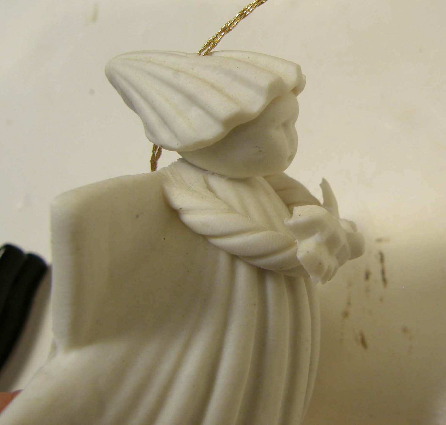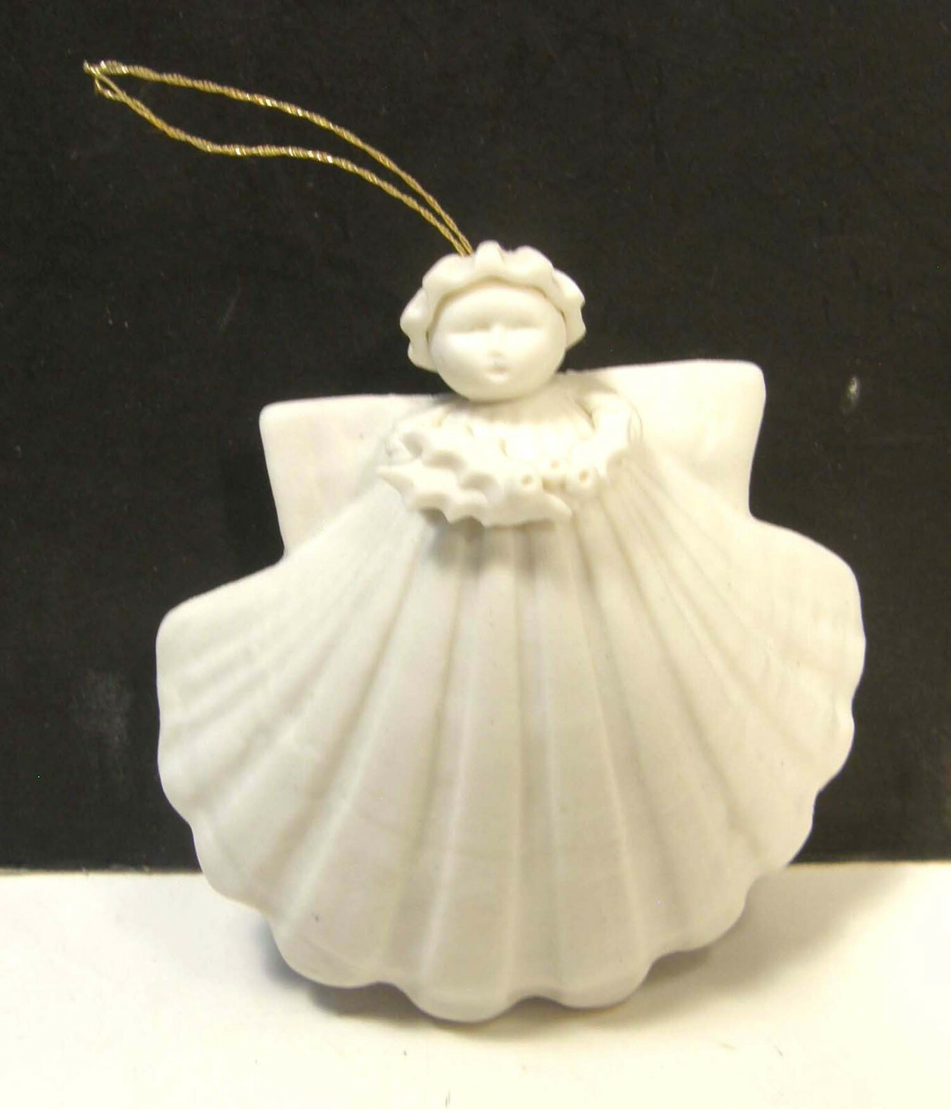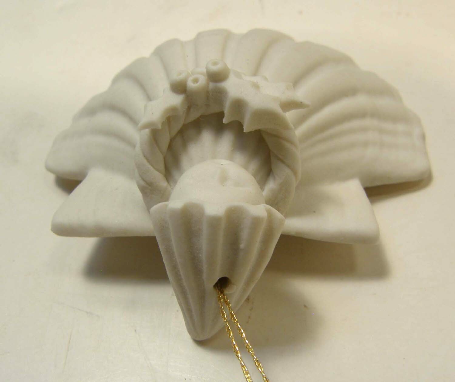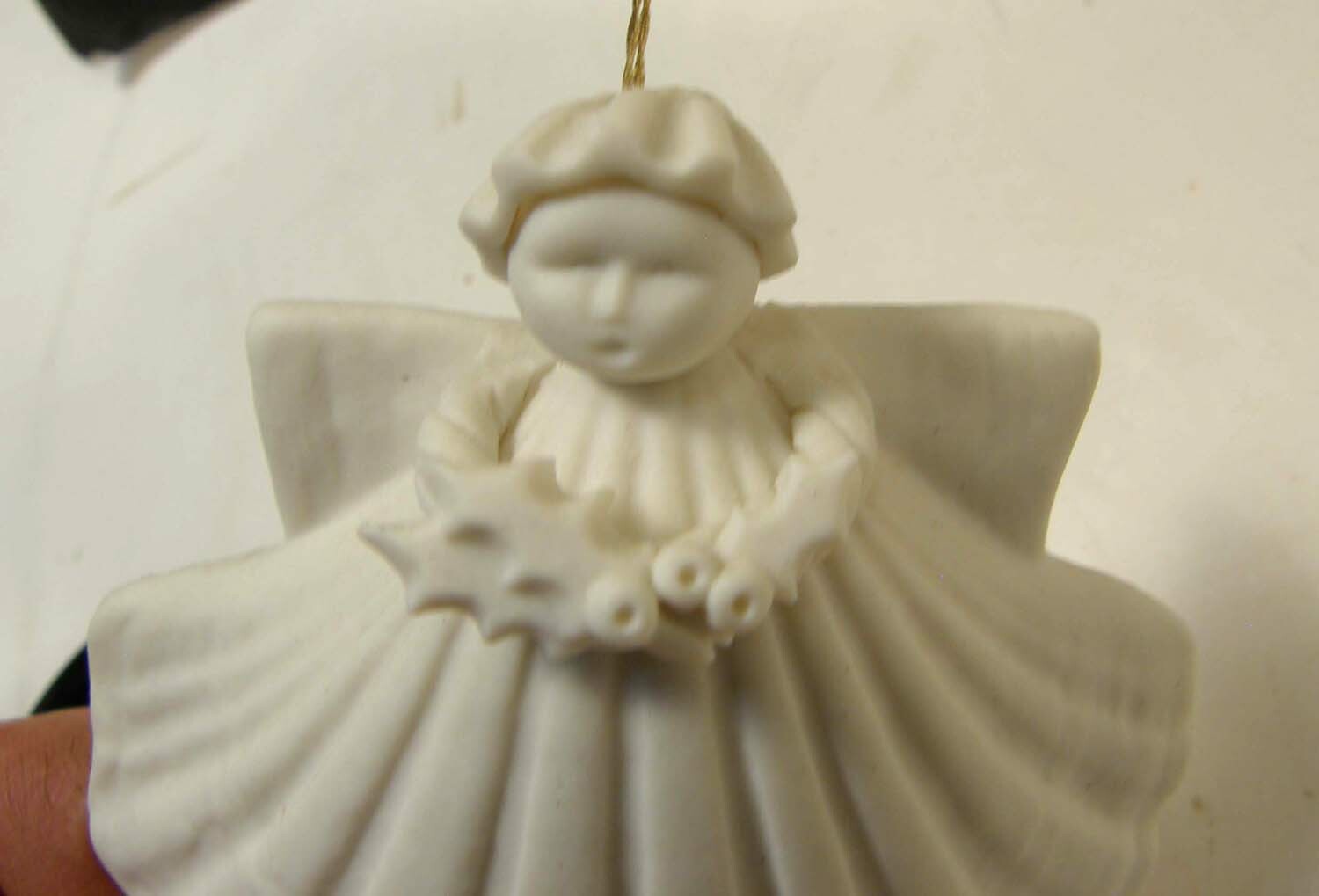 как выглядит MARGARET FURLONG BISQUE 3" ANGEL WITH HOLLY ORNAMENT 1983 фото