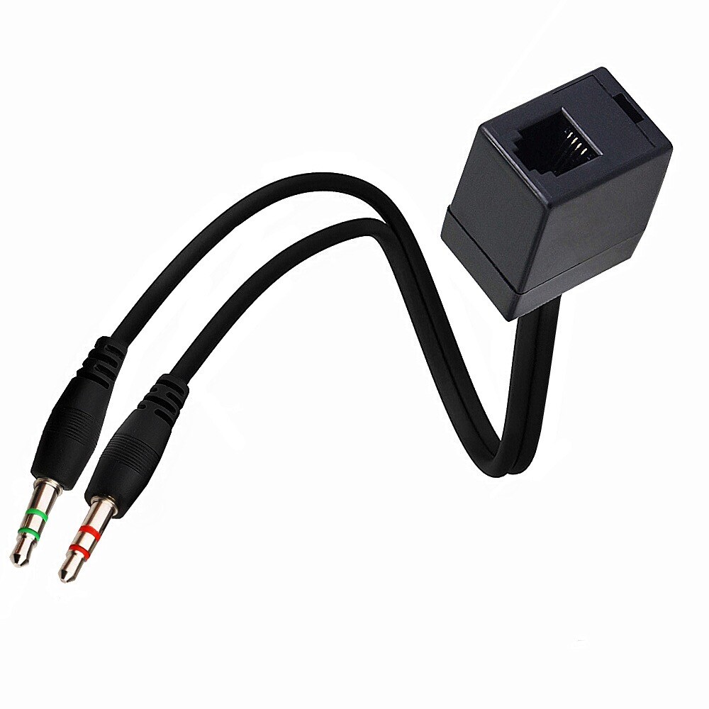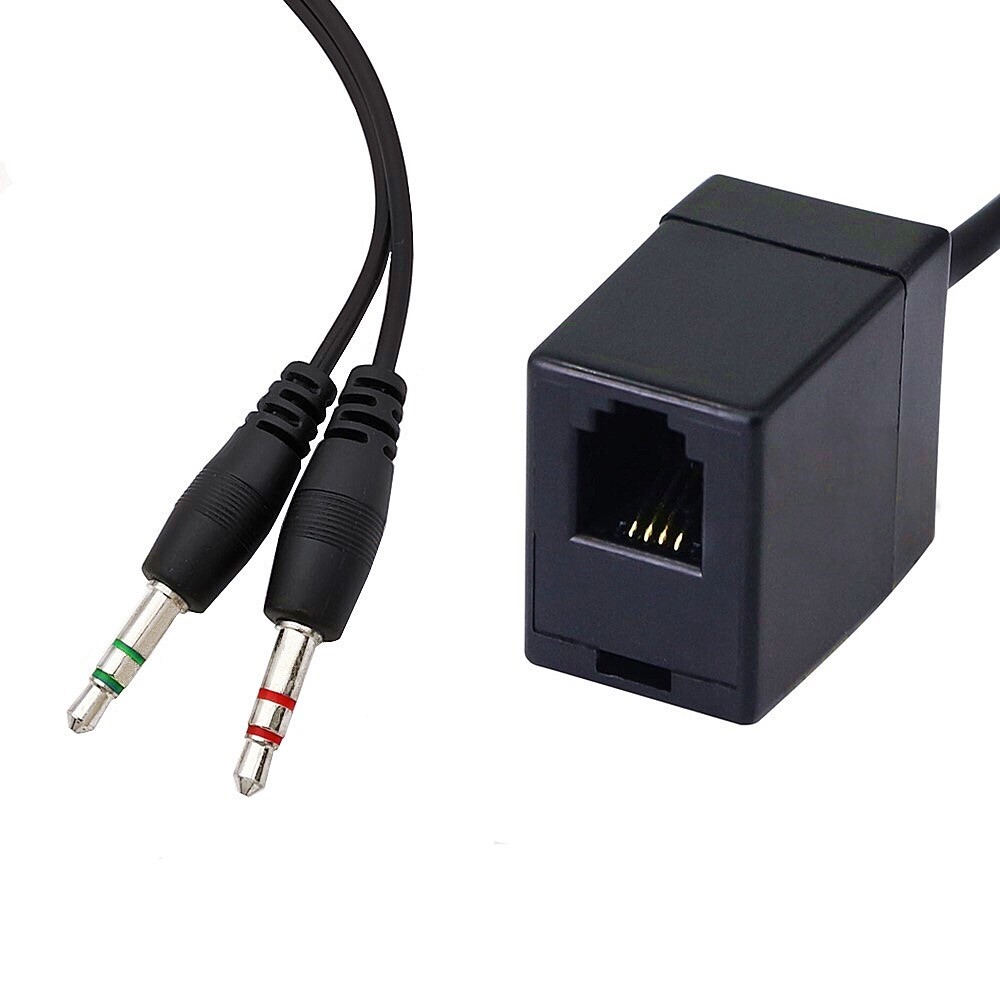 как выглядит RJ9 Female 4P4C to Dual 3.5mm Male Jack PC Headset Telephone Phone Adapter Cable фото