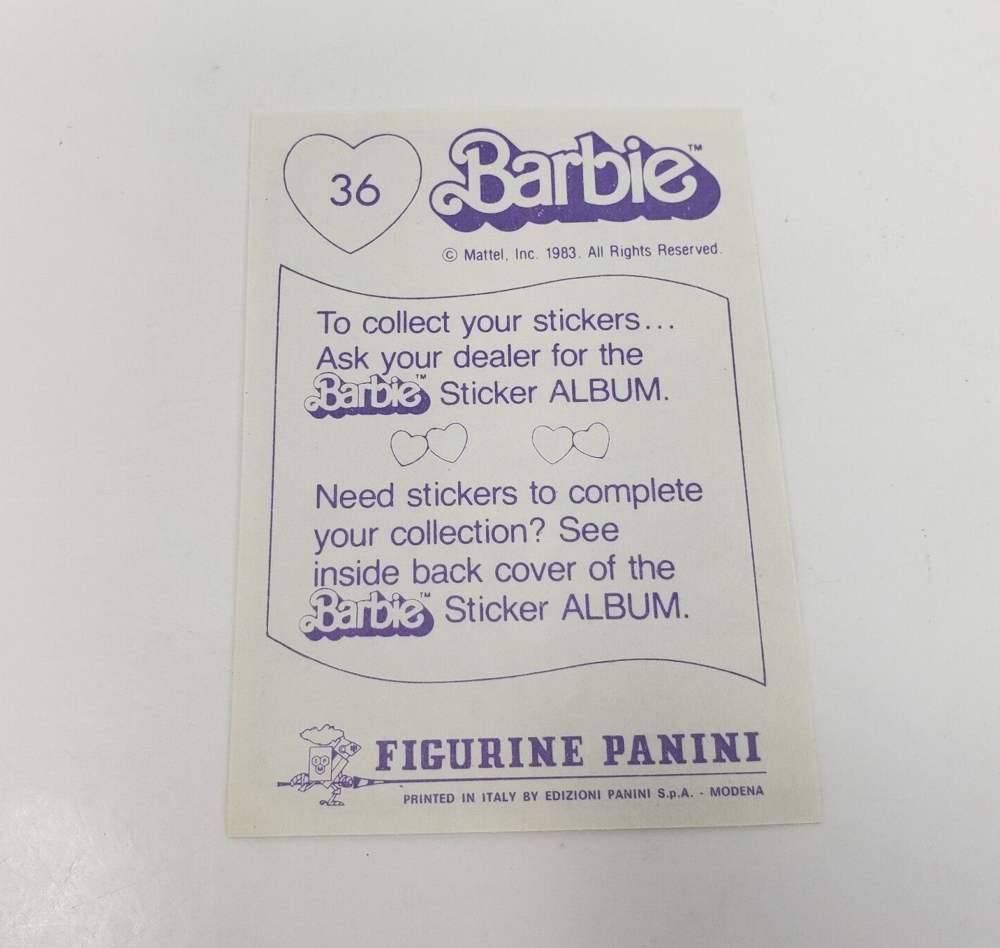 VINTAGE 1983 MATTEL FIGURINE PANINI BARBIE ALBUM STICKER NOS NEW OLD STOCK 36