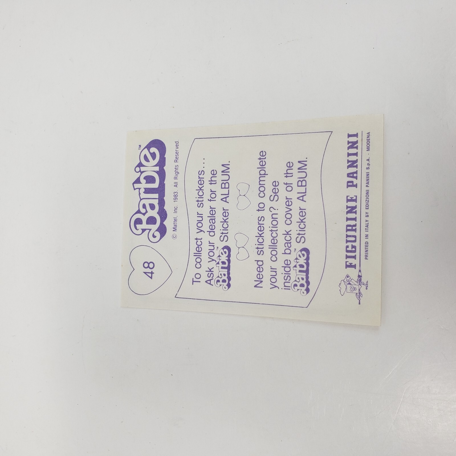 VINTAGE 1983 MATTEL FIGURINE PANINI BARBIE ALBUM STICKER NOS NEW OLD STOCK 48