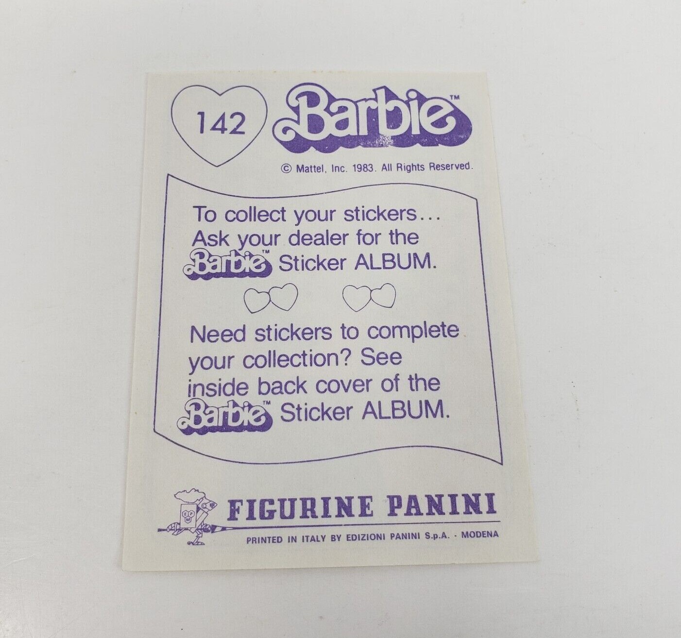 VINTAGE 1983 MATTEL FIGURINE PANINI BARBIE ALBUM STICKER NOS NEW OLD STOCK 142