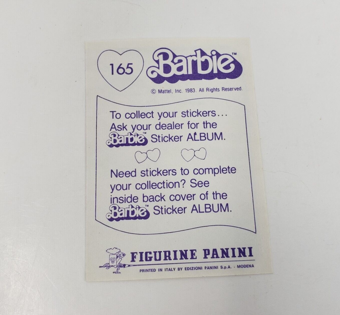 VINTAGE 1983 MATTEL FIGURINE PANINI BARBIE ALBUM STICKER NOS NEW OLD STOCK 165