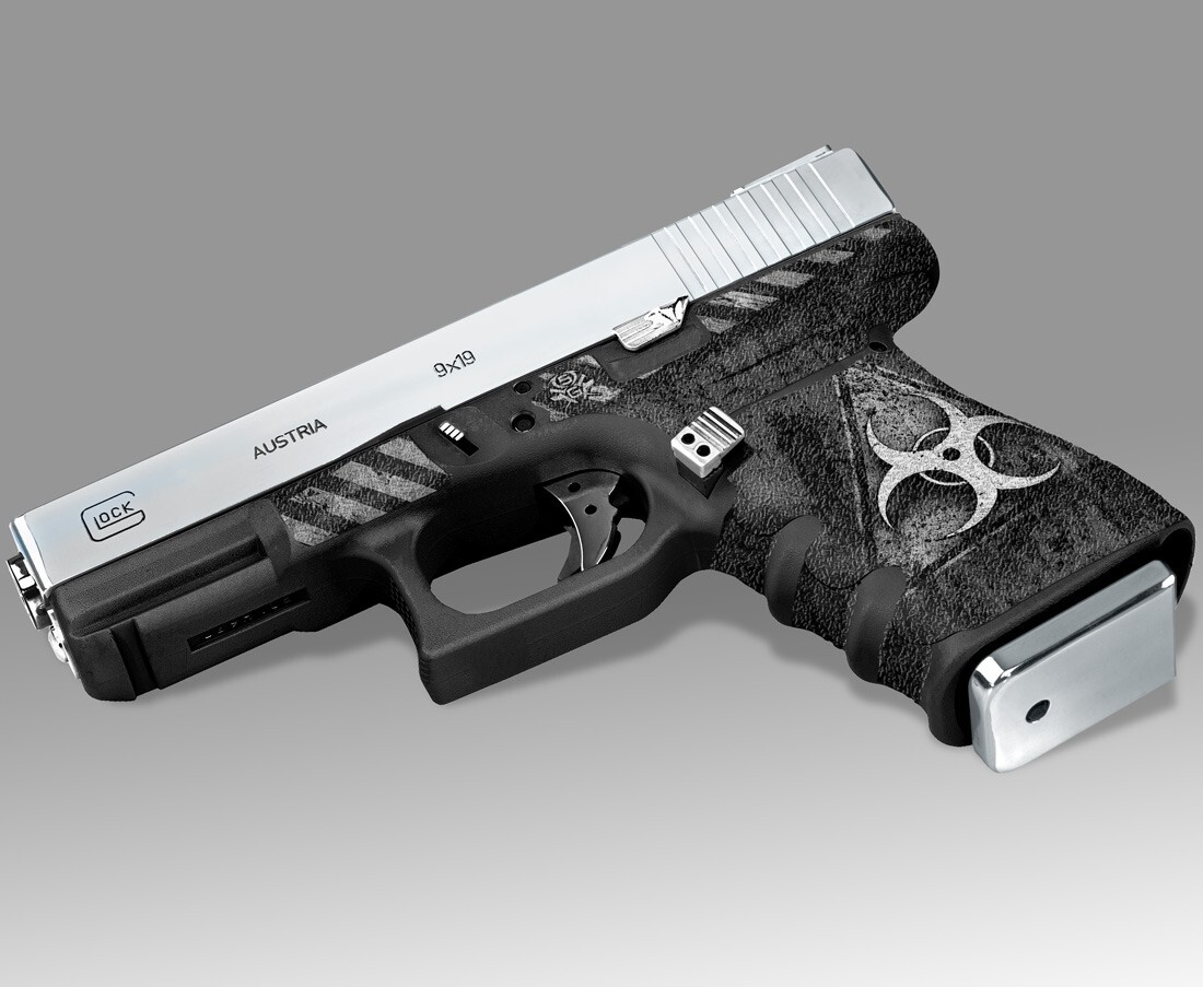 как выглядит Glock 19 Gen 3 Decal Grip - Biohazard Black White фото