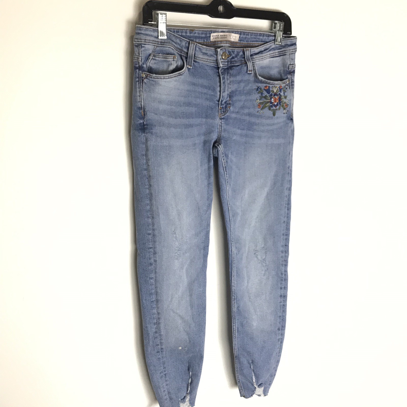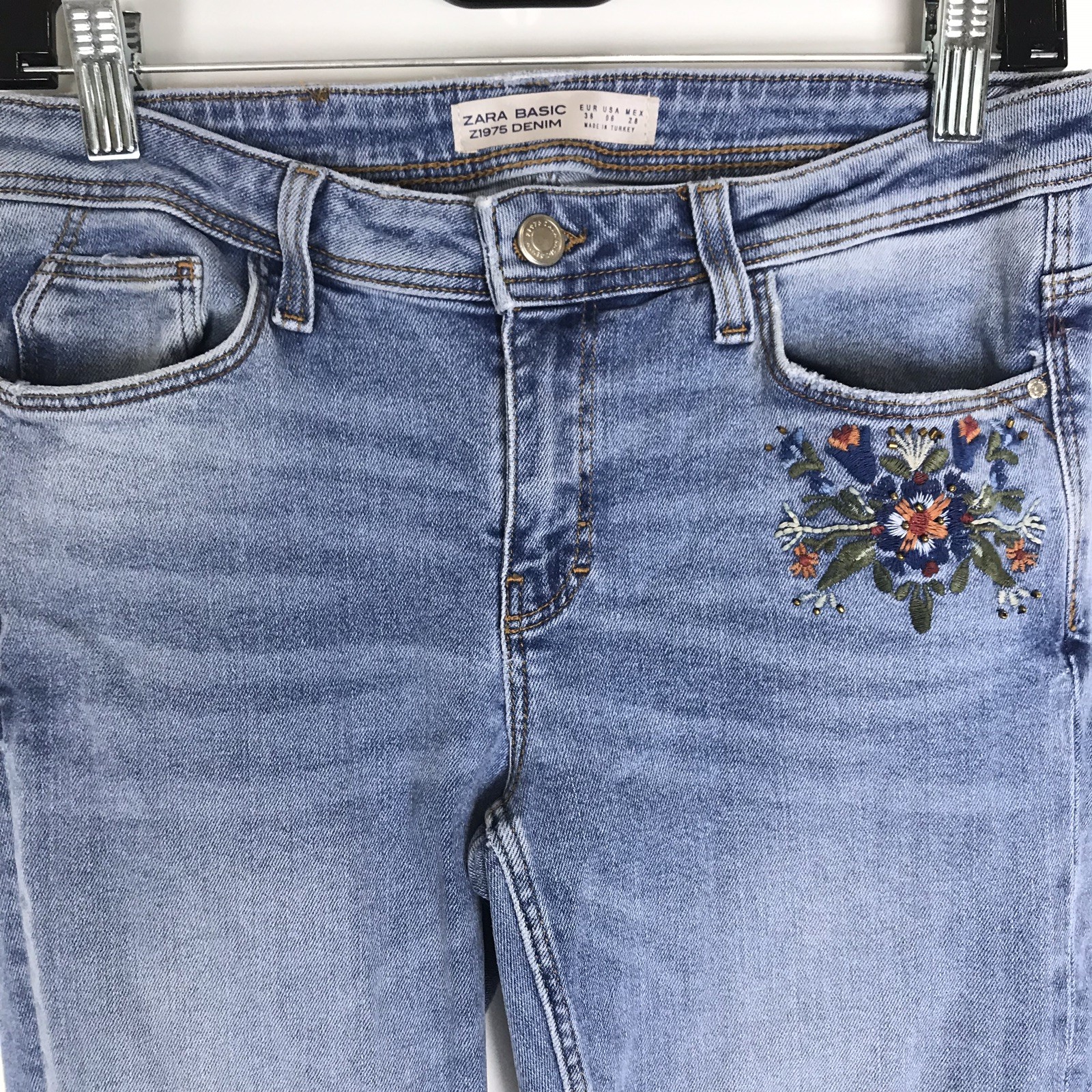 как выглядит Zara Basic Z1975 Womens Denim Embroidered Jeans Floral Distressed NWOT Hem 38/6 фото