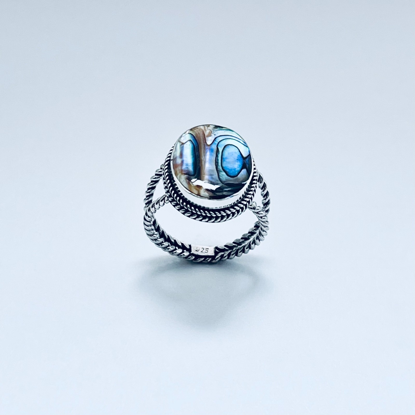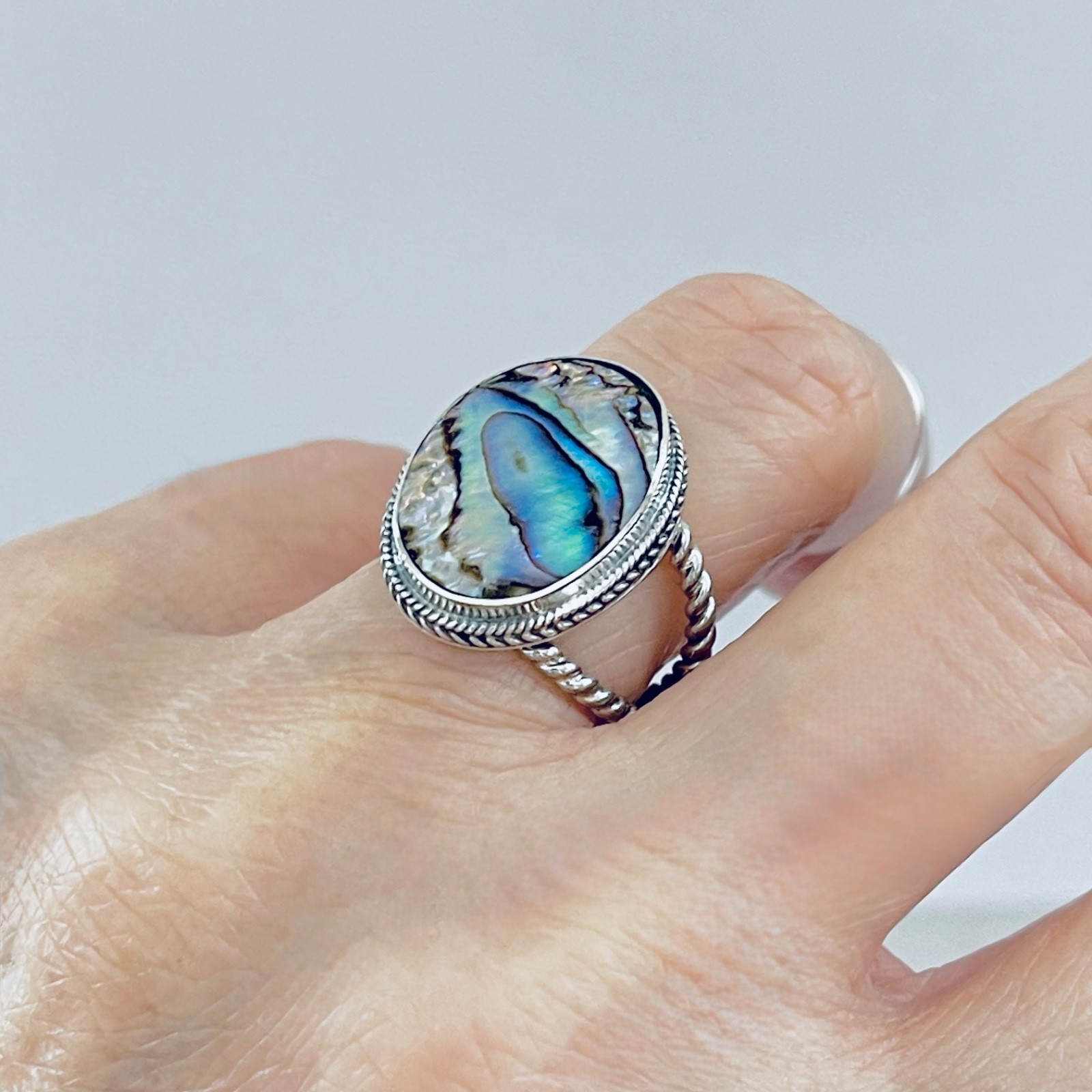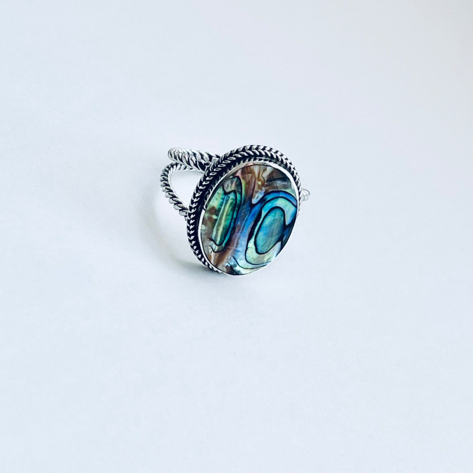 Sterling Silver Abalone Ring with Braid Band Boho Ring, Silver Ring, Stone Ring