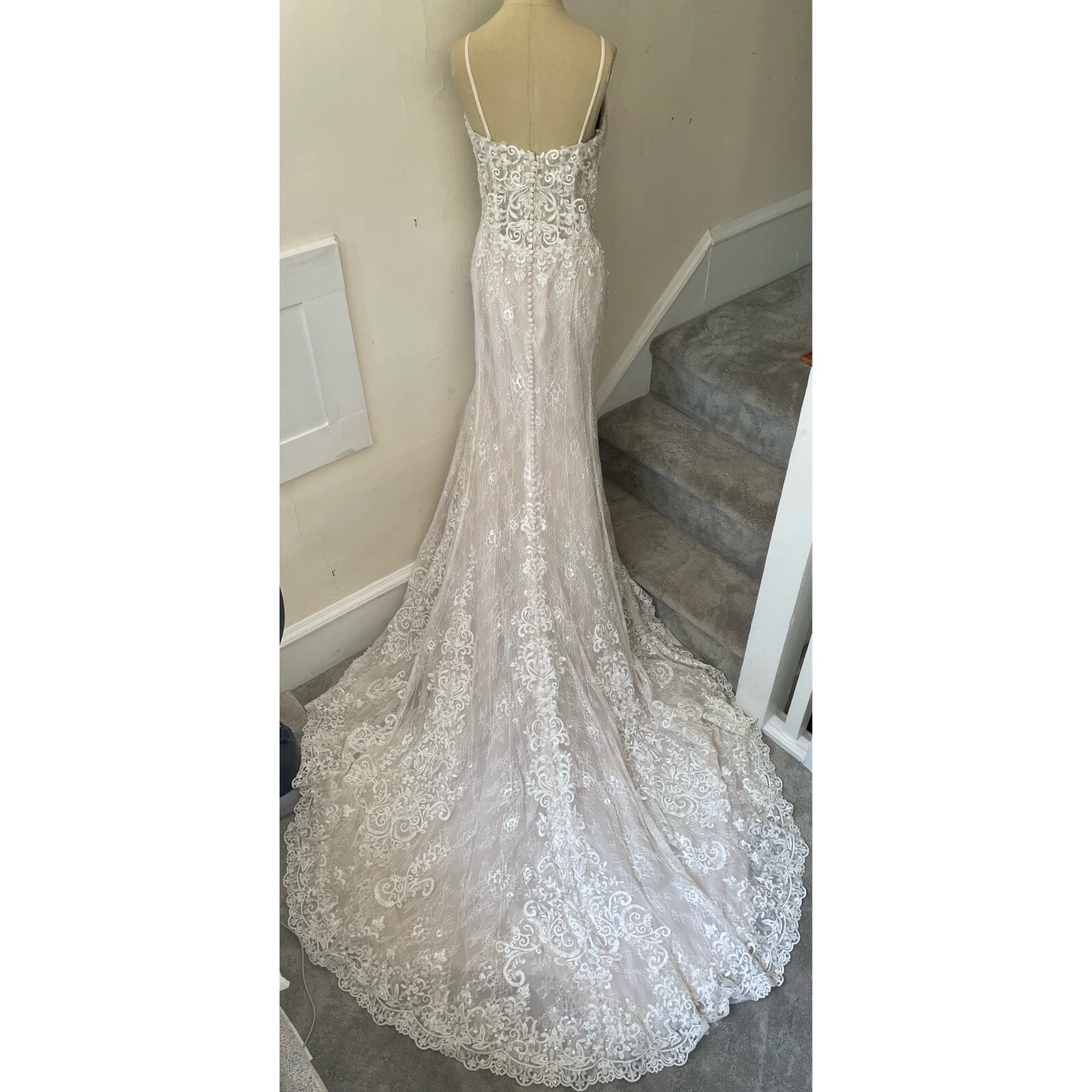 как выглядит Essense of Australia Ivory Sheer Corset Linear Beading Wedding Dress D2366 Sz 12 фото