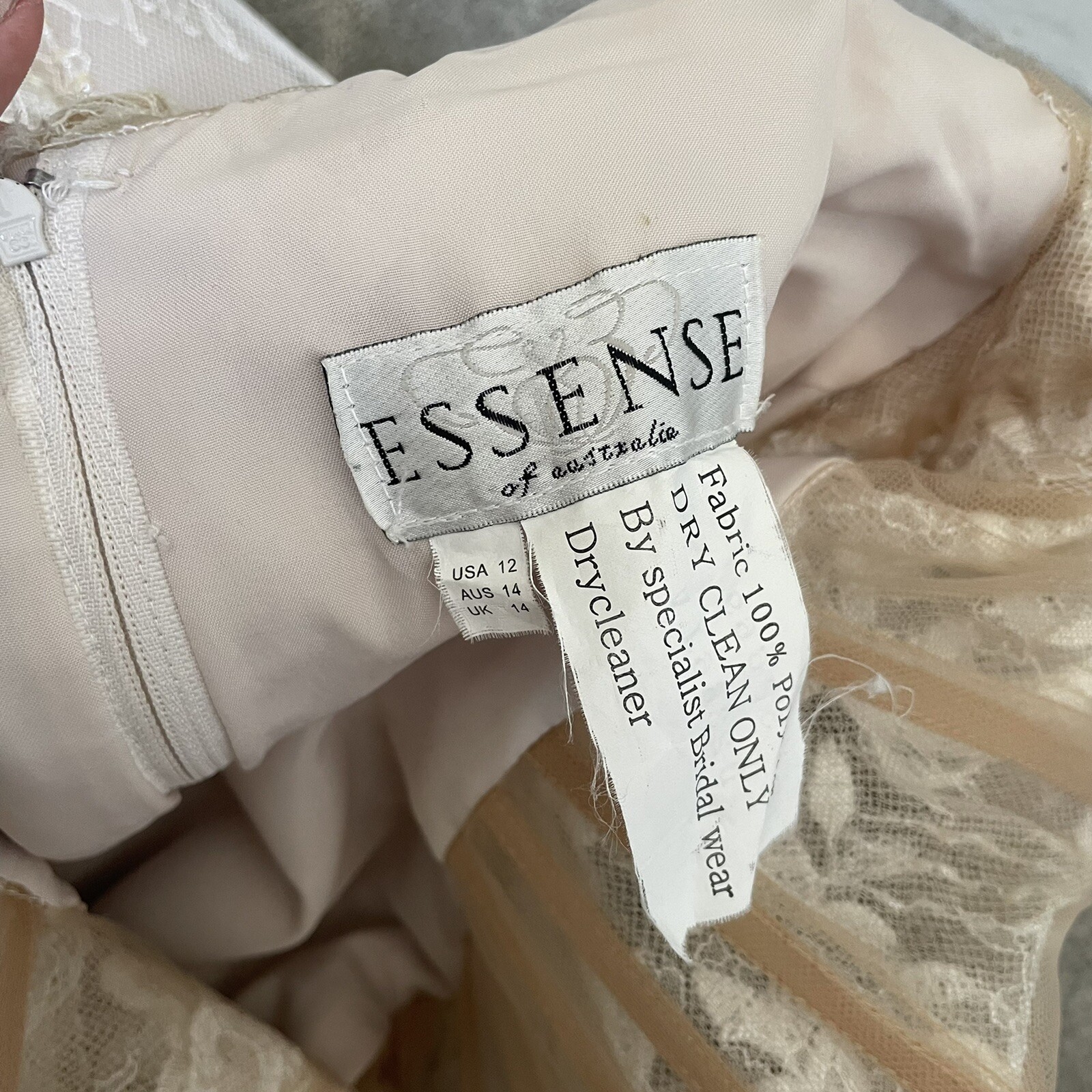 Essense of Australia Ivory Sheer Corset Linear Beading Wedding Dress D2366 Sz 12