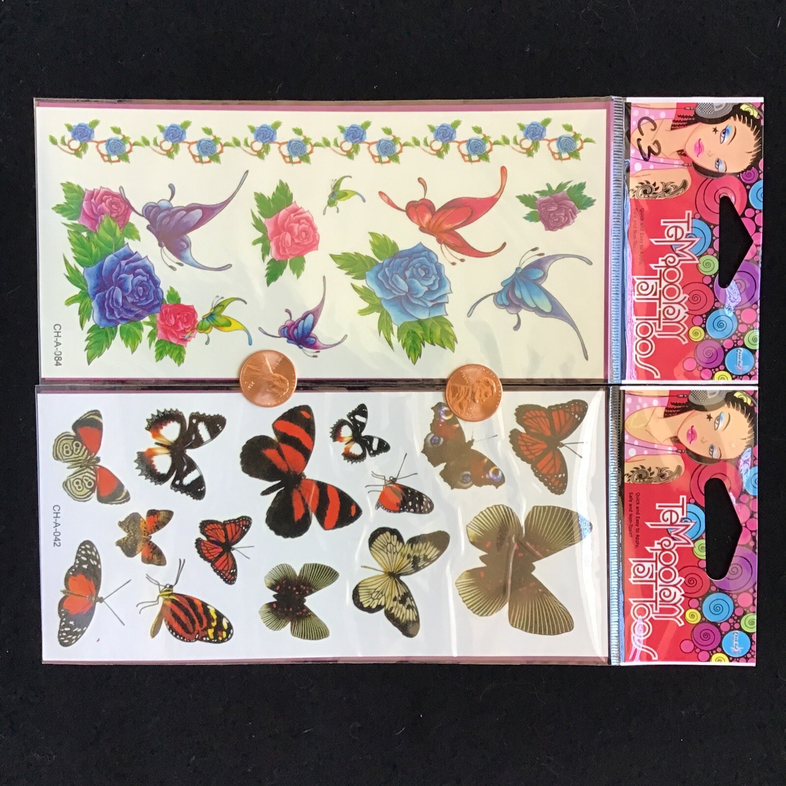6pcs Waterproof Temporary Butterfly Tattoo Sticker / Rose Skin Body Art St-153