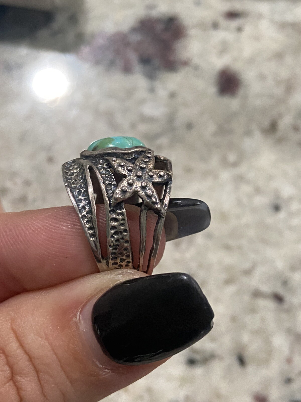 как выглядит Sterling Silver 95 Turquoise Wide Band Ring, Size 7.75 фото