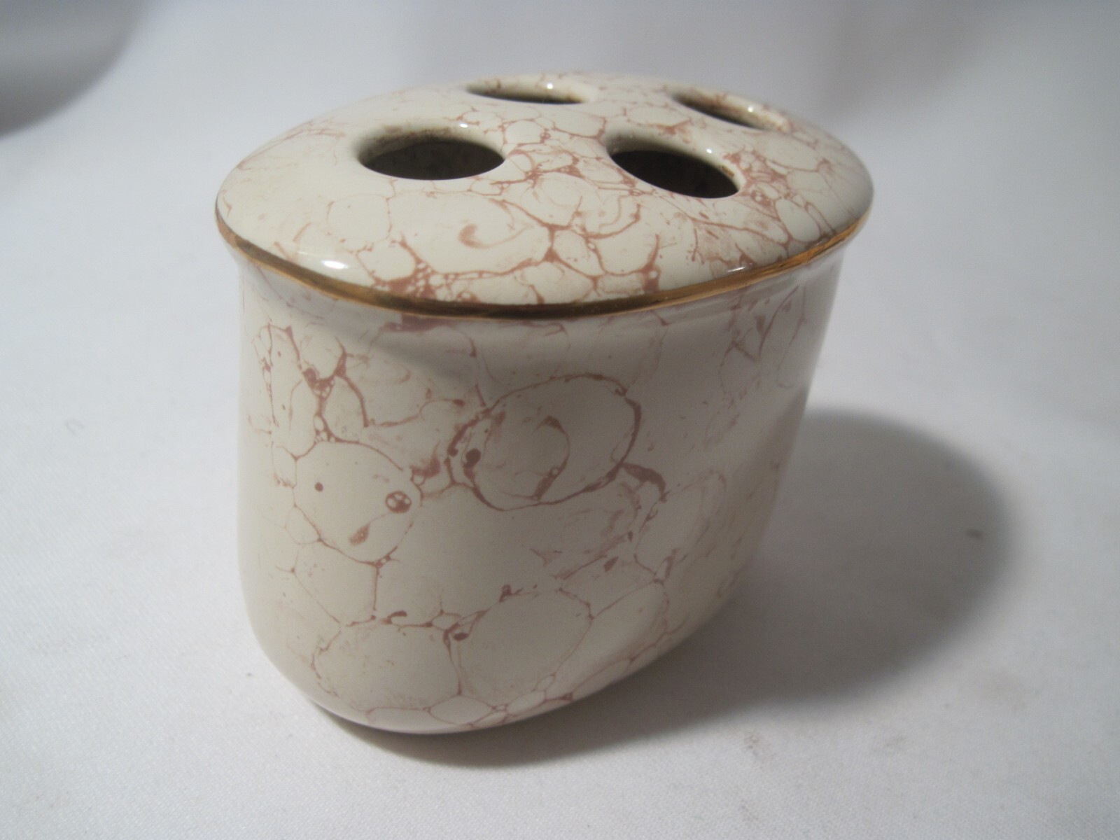 Springs Green toothbrush Holder Bathroom White Beige Faux Marble Gold Trim