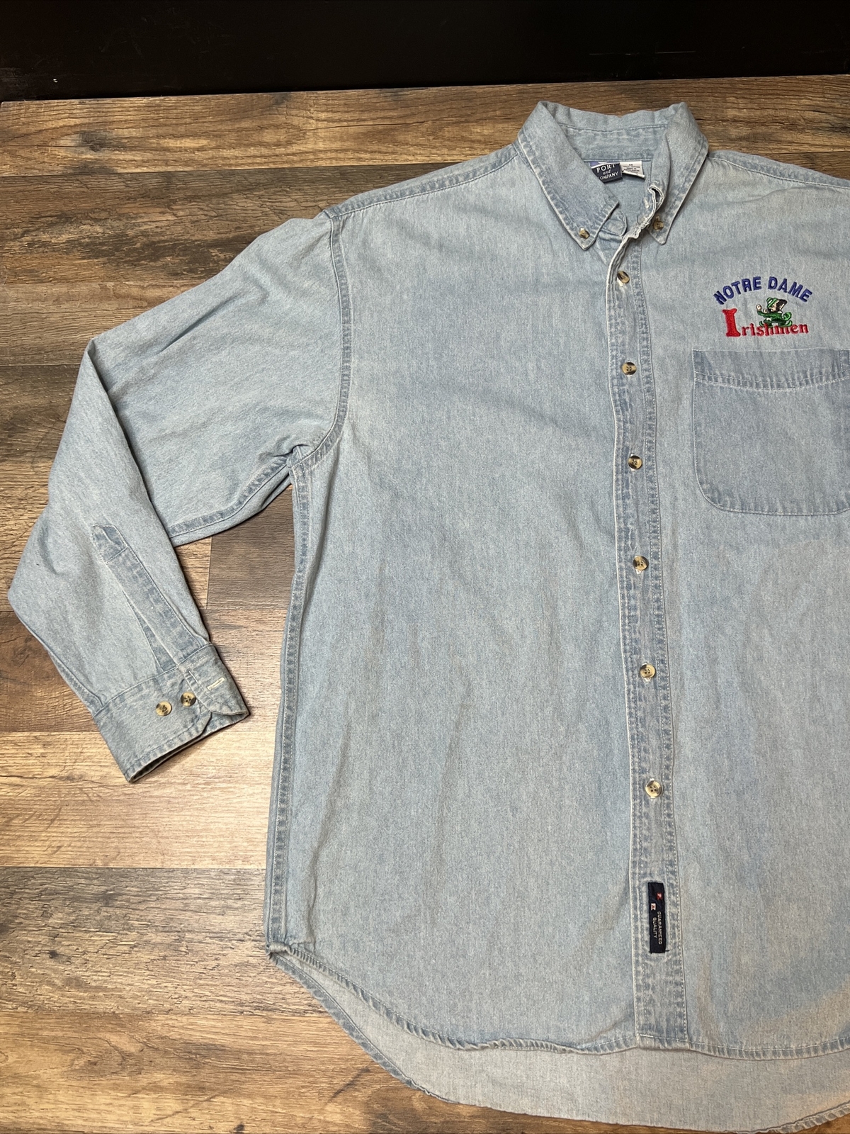 как выглядит Port and Company Denim Shirt Men s Medium Norte Dame Long Sleeve 100 Cotton фото