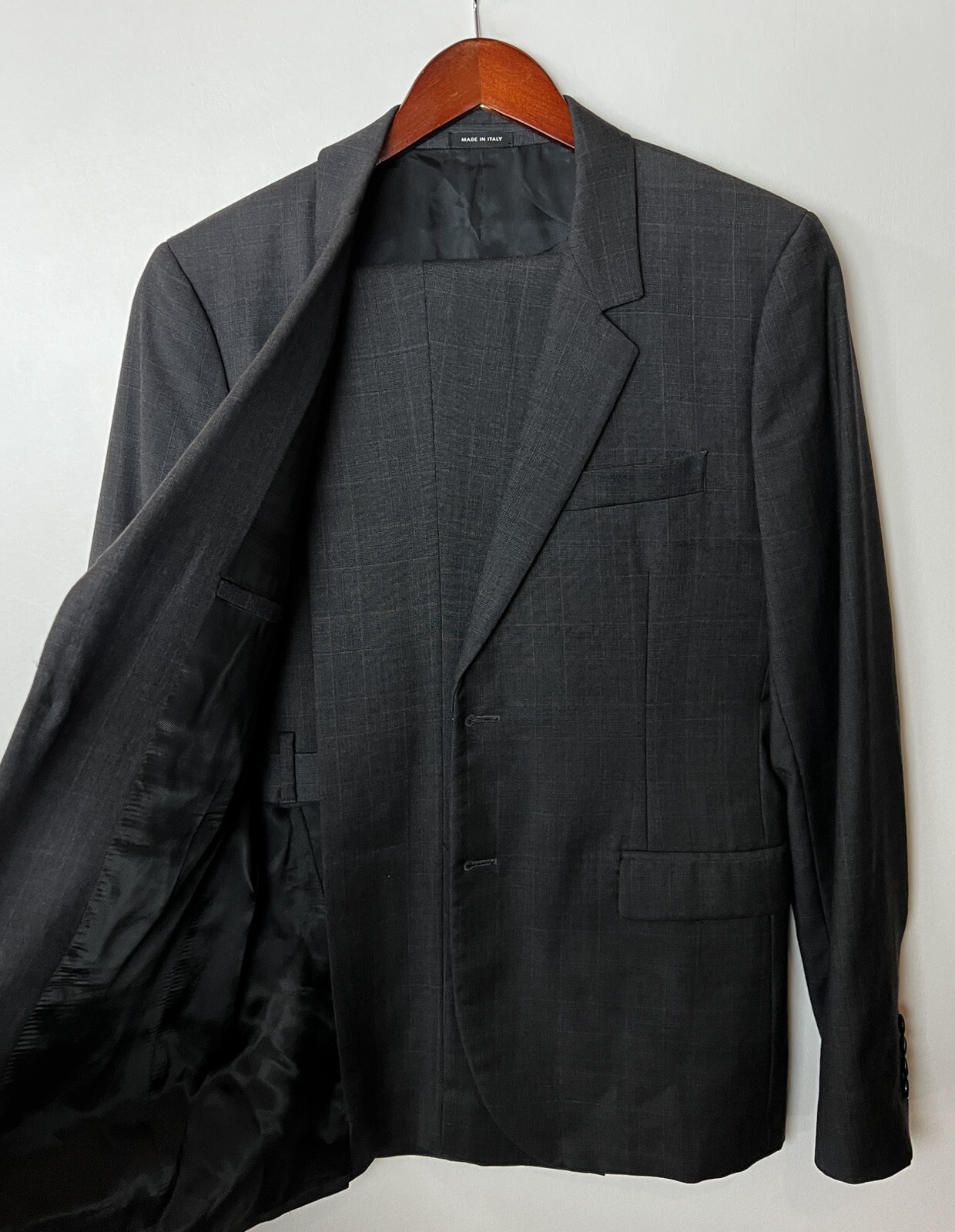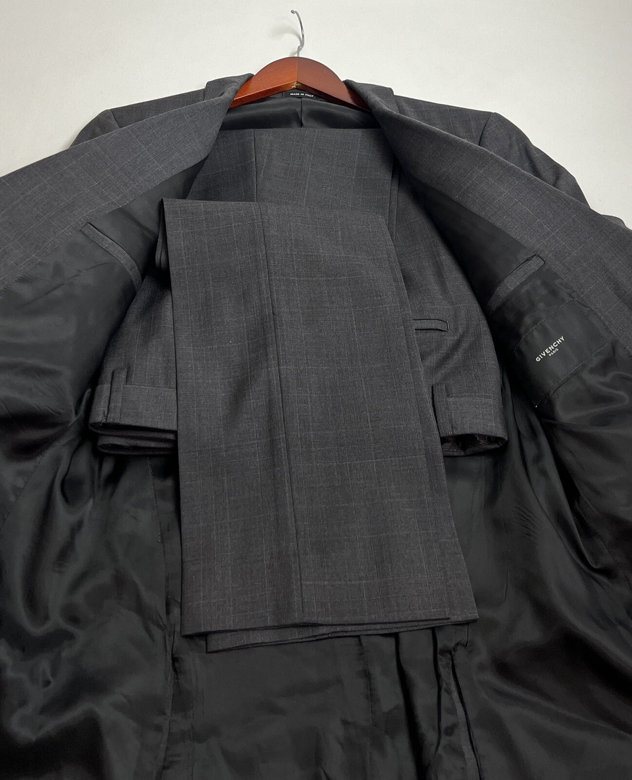 909 GIVENCHY PARIS Gray with Plaids Two Button Slim Fit Suit Size 40