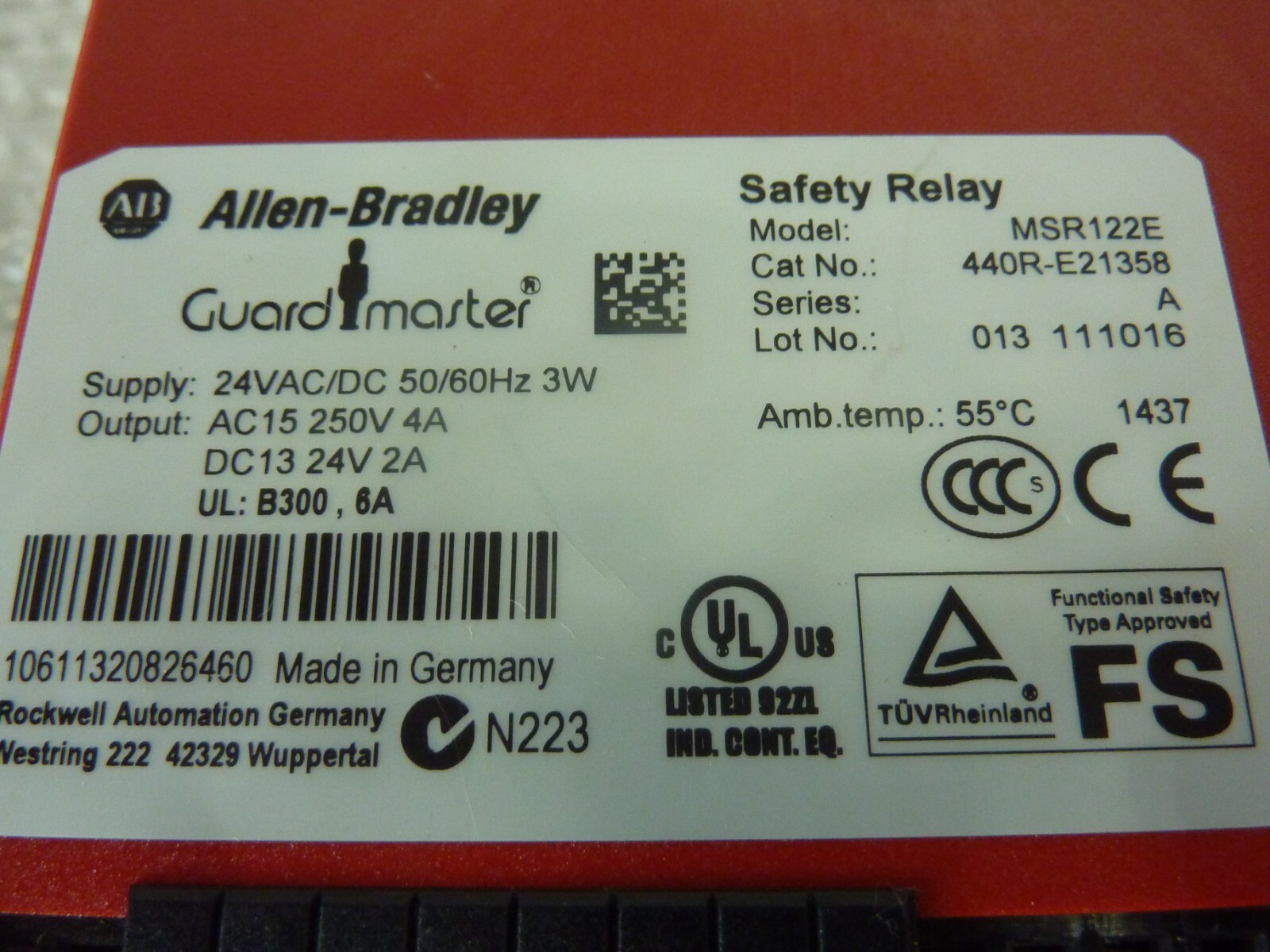 Allen-Bradley MSR122E Guardmaster Safety Relay 440R-E21358 Series A 23459