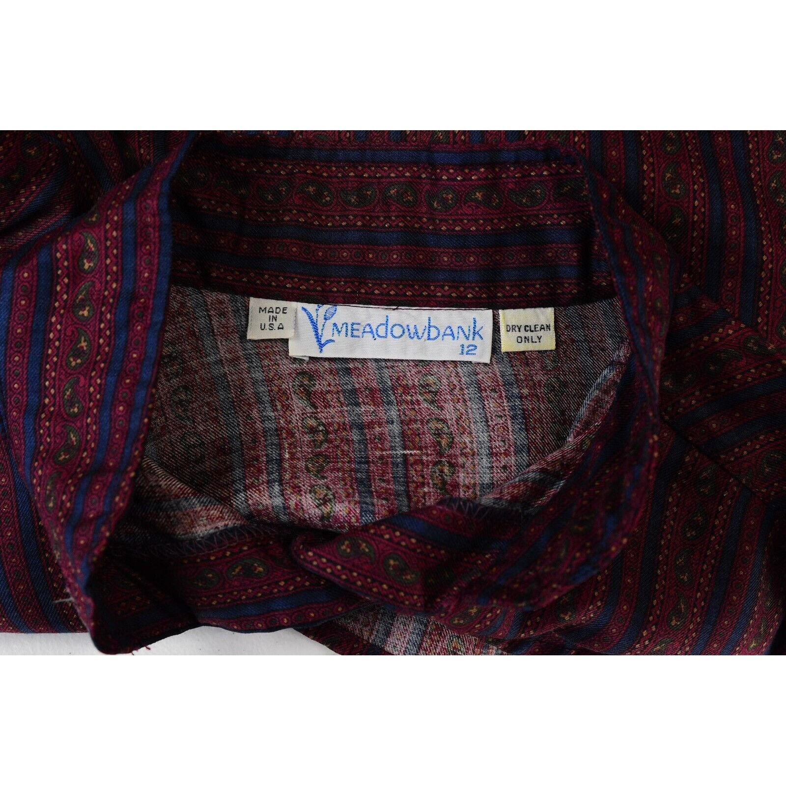 70s Vintage Paisley Skirt Set Womens M Berry Blue Boho Belted Long Sleeve Outfit