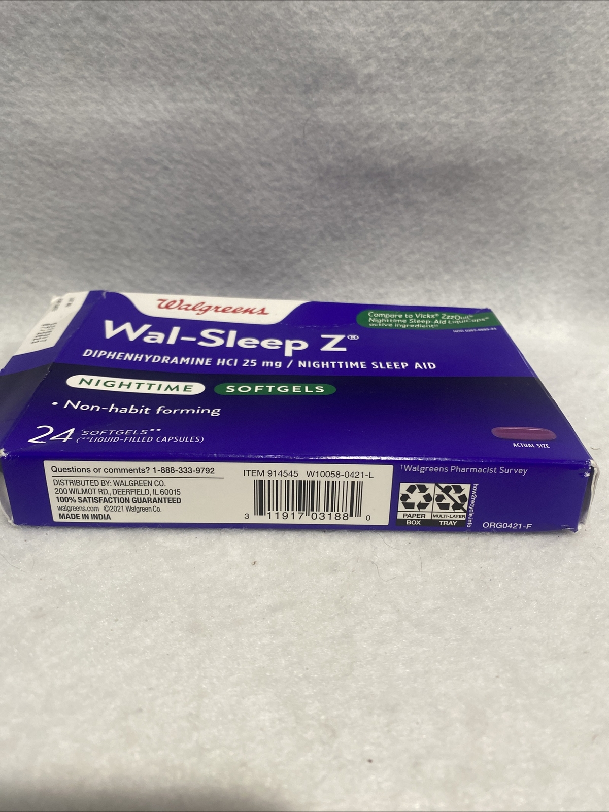 Lot of 3 Wal-Sleep Z 24 Ct Diphenhydramine Hci 25 Mg Softgels sleeping tablet