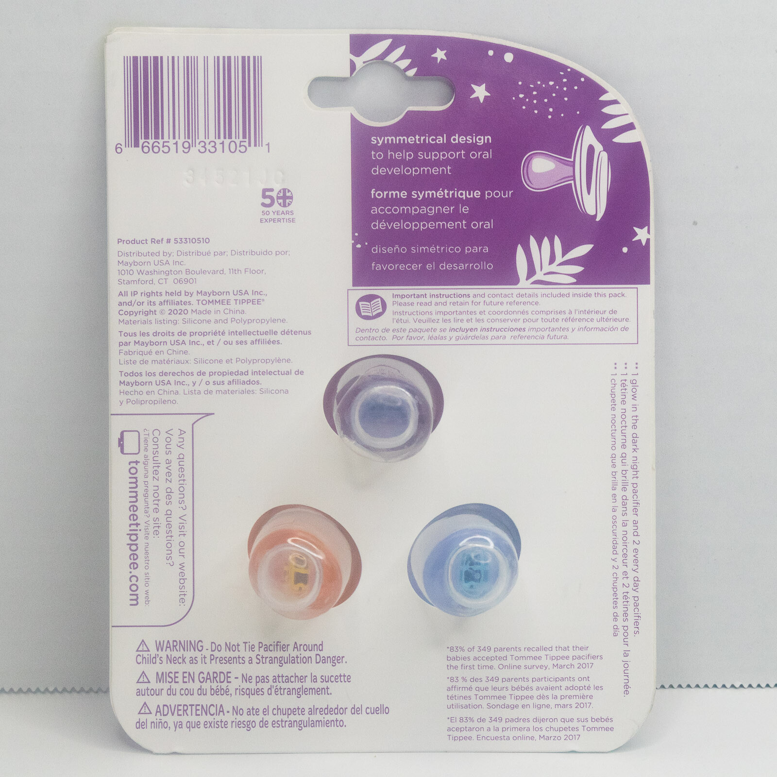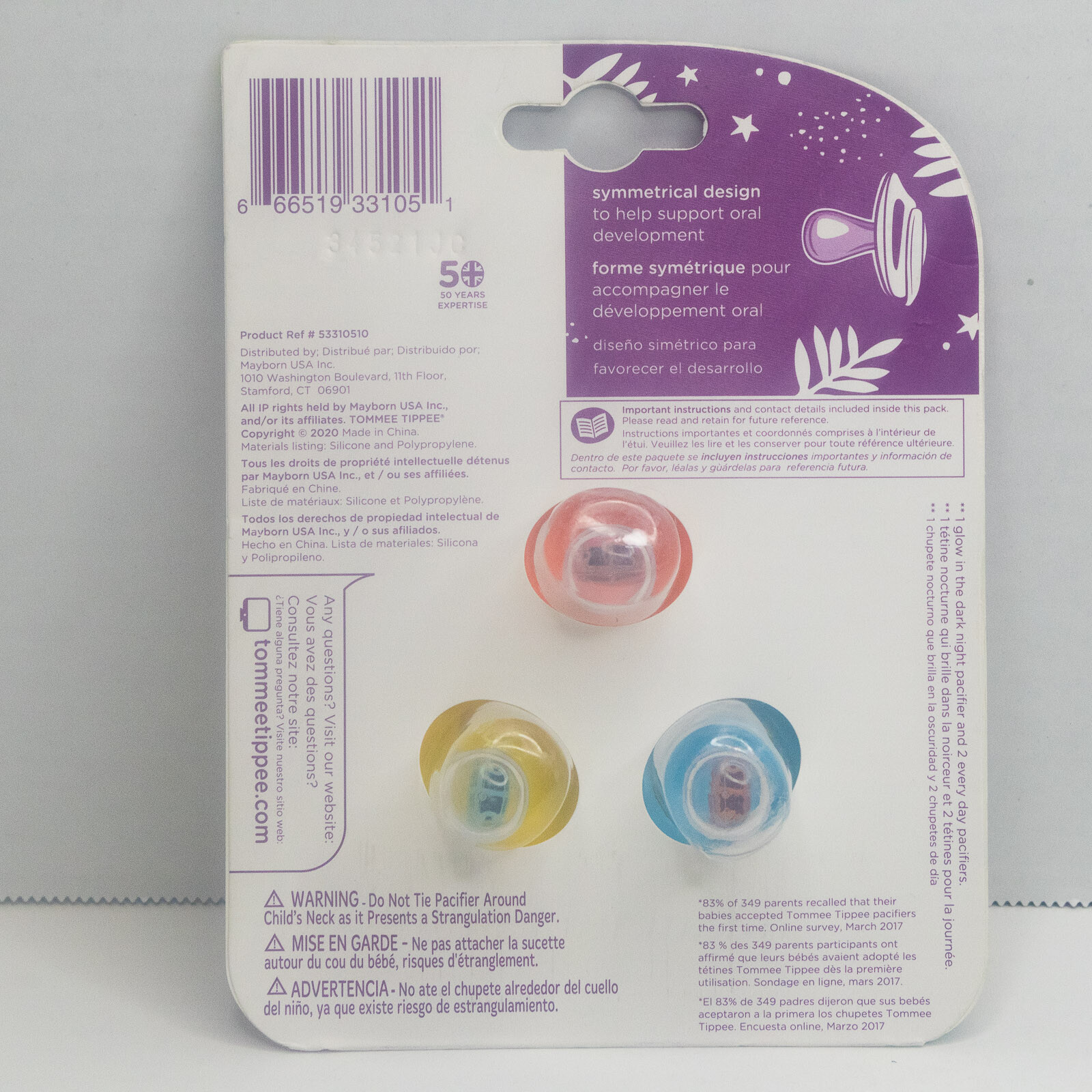 Tommee Tippee Pacifier Orthodontic 3 Pack Day Night Glow in the Dark New Binky