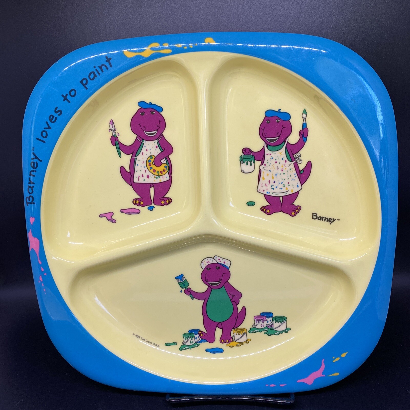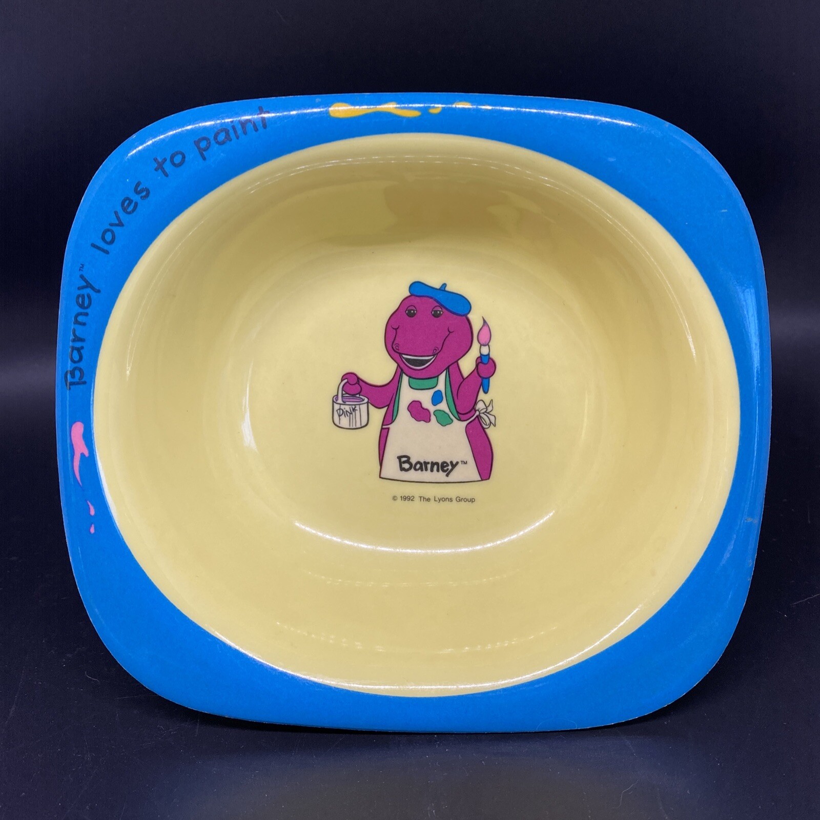• Vintage Barney Plate Bowl dated 1992 Barney Loves To Paint