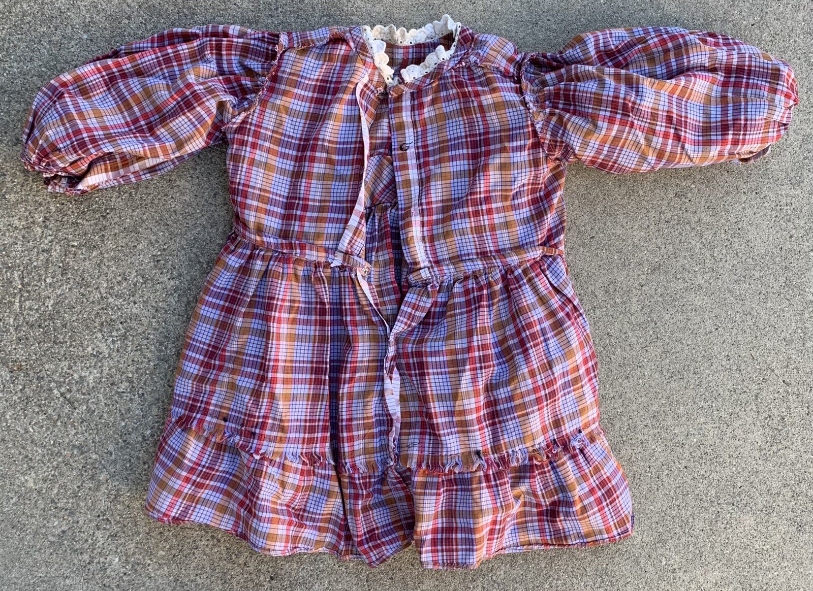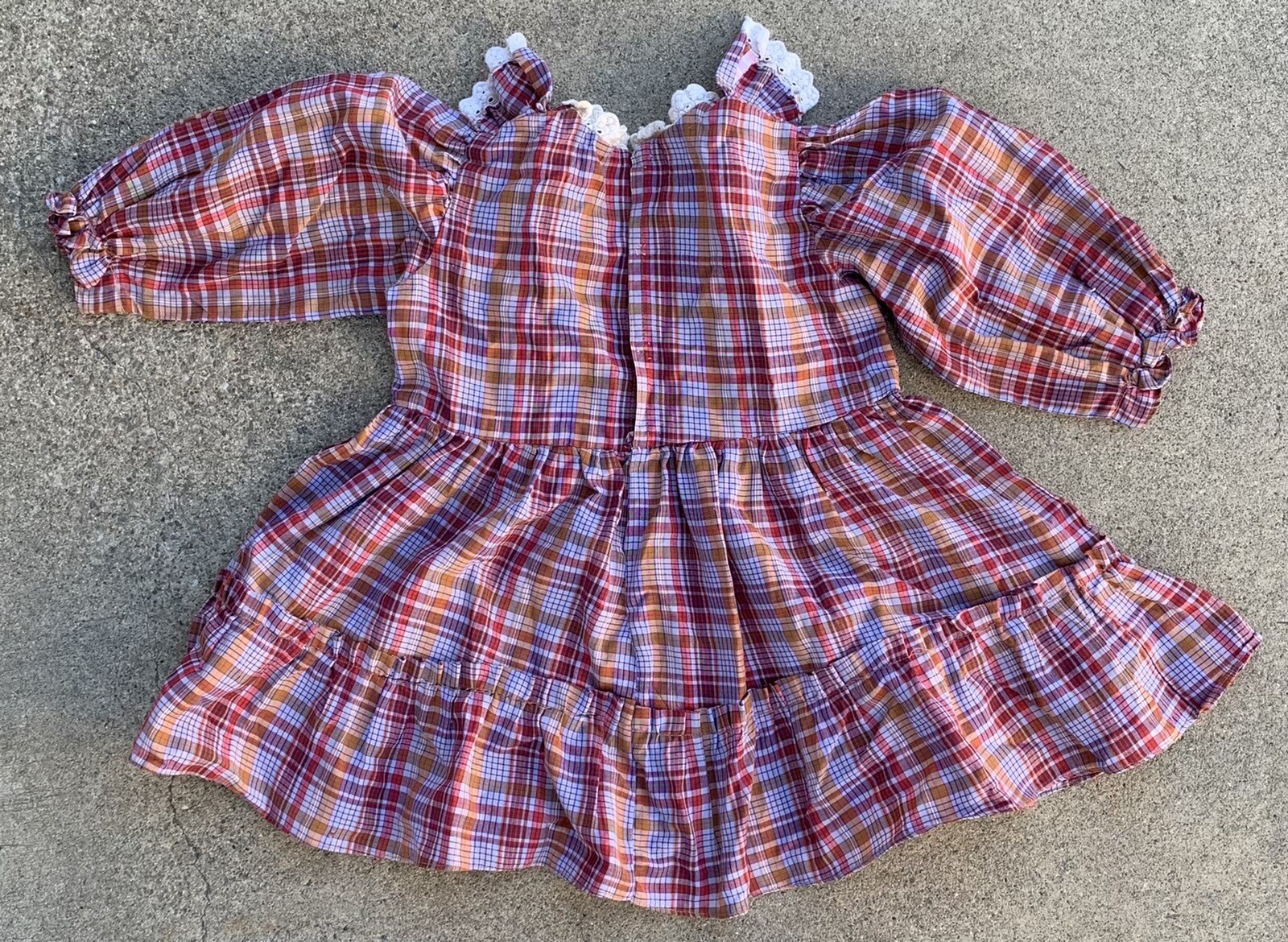 vintage girls plaid prairie dress puffy ruffles size 4 5 or 6 see measurements