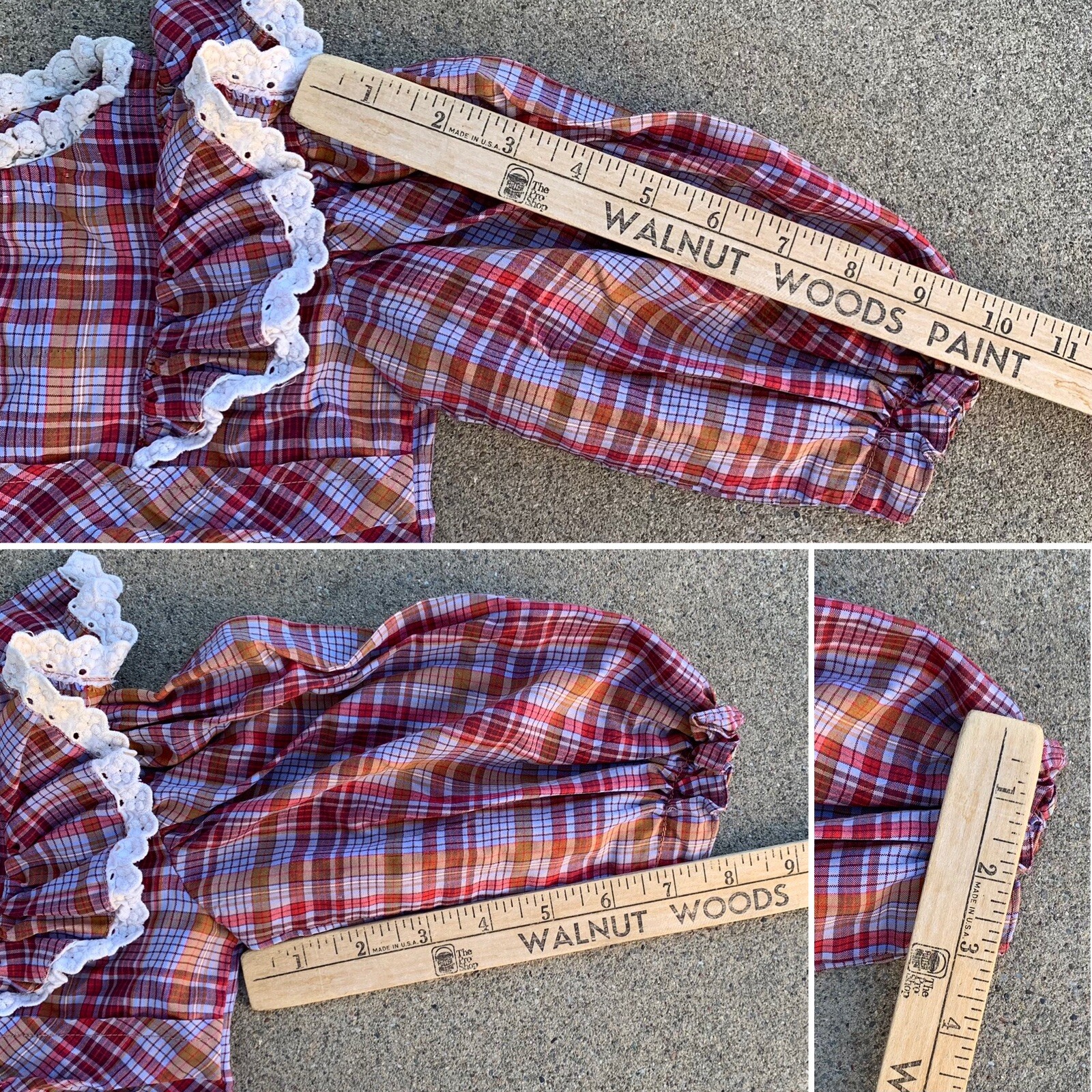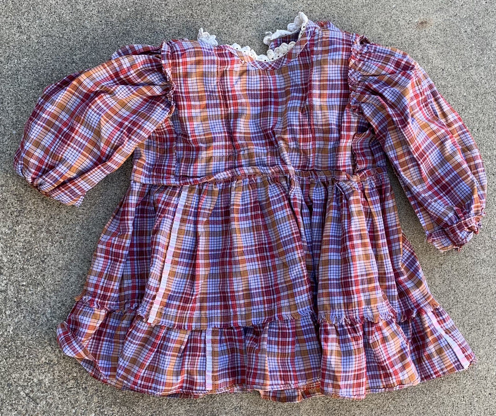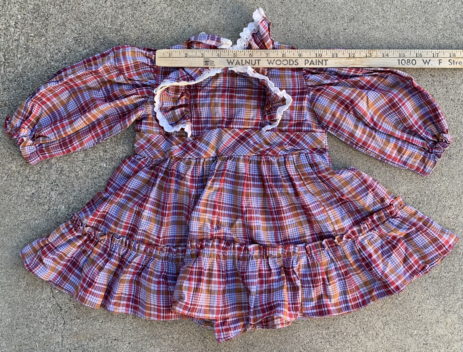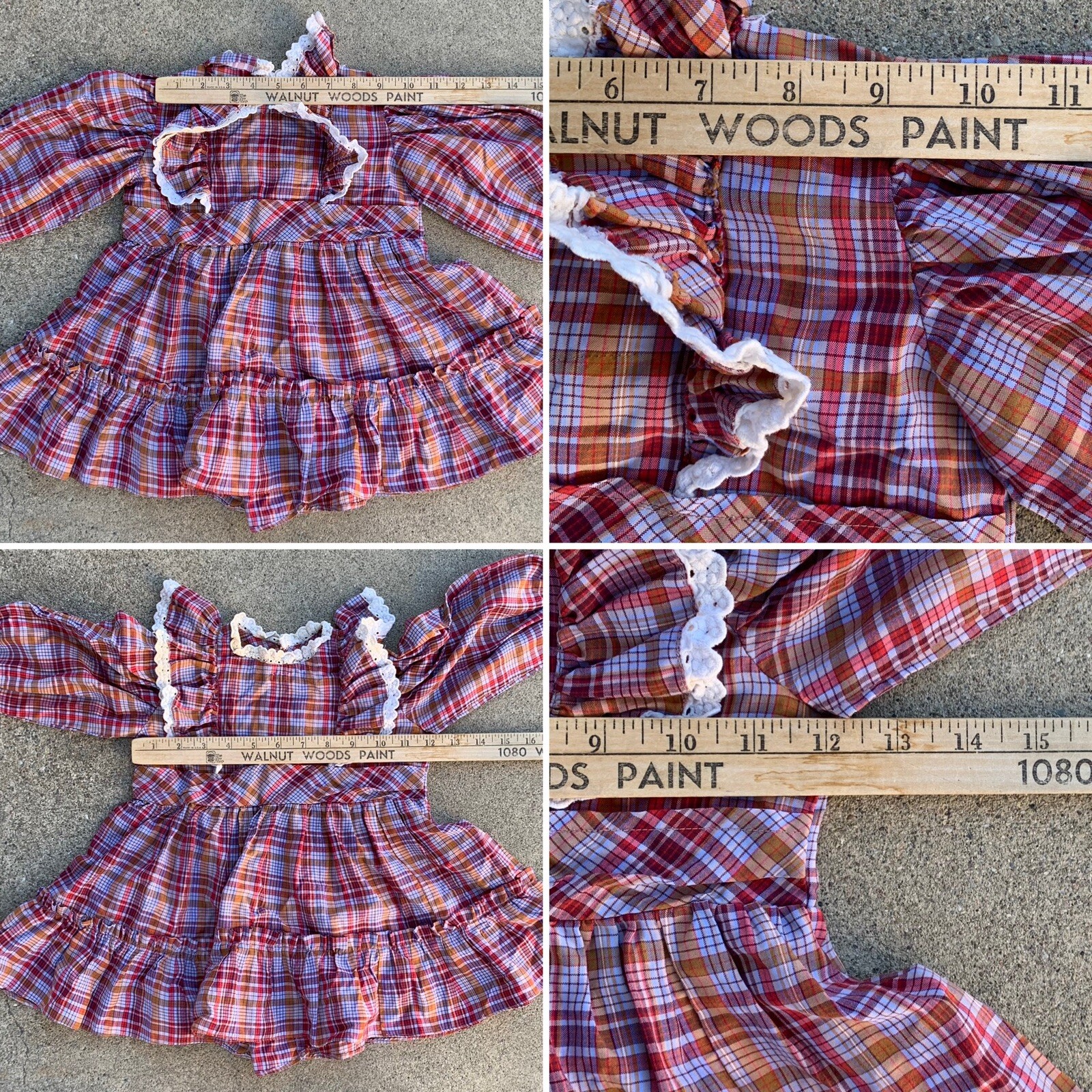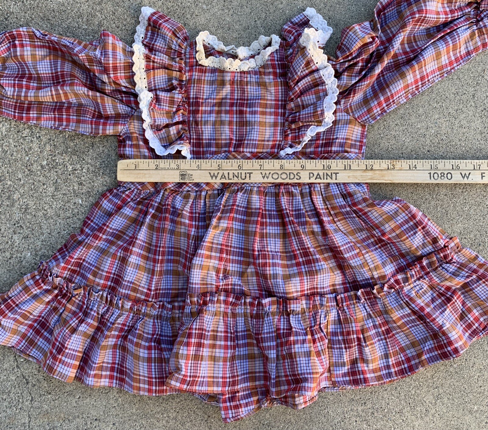 как выглядит vintage girls plaid prairie dress puffy ruffles size 4 5 or 6 see measurements фото