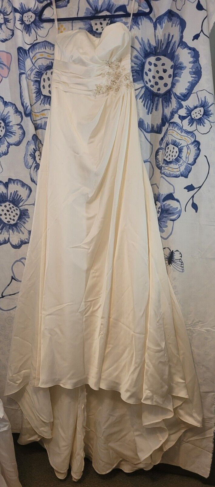 Enzoani Beautiful Wedding Dress Gown Ruched Beaded Bodice Ivory Off White Size 8