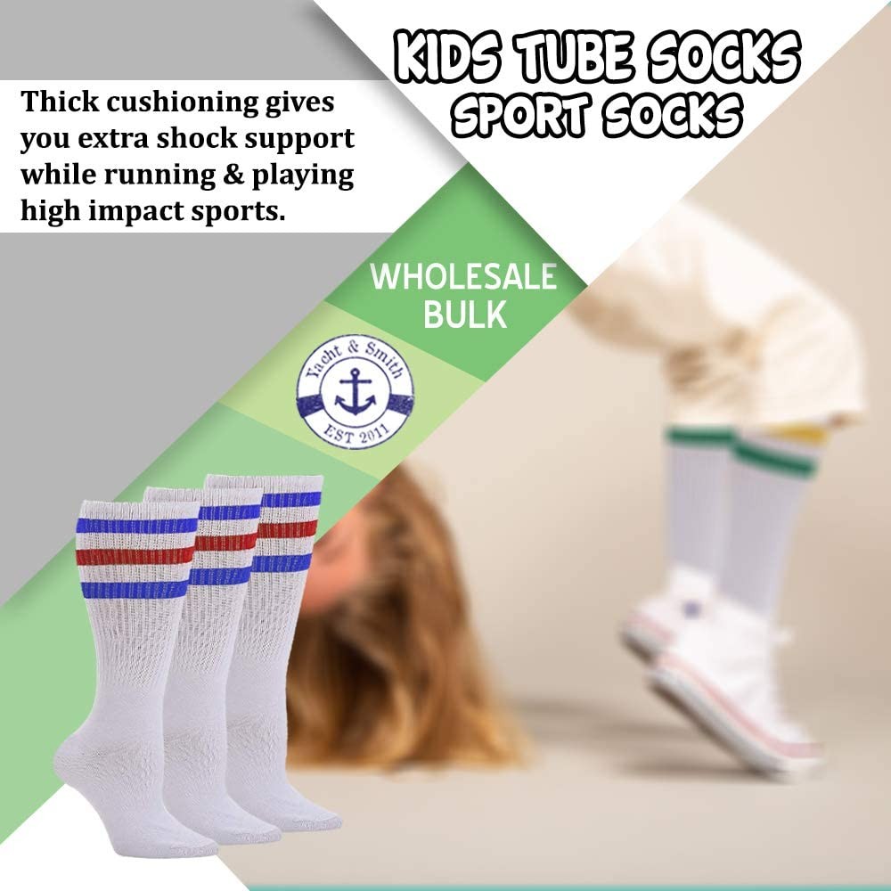 24 Pack of Kids Cotton Tube Socks White With Stripes Size 4-6 - Boys Crew Sock