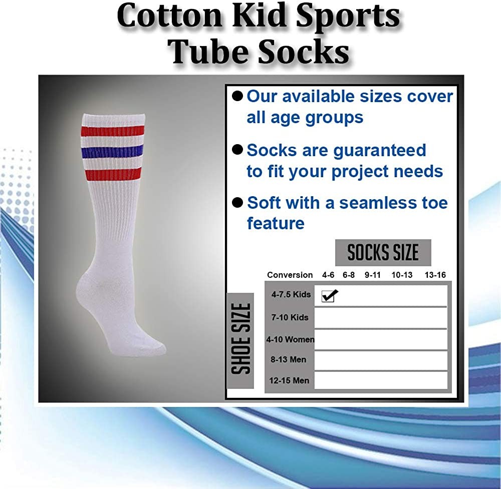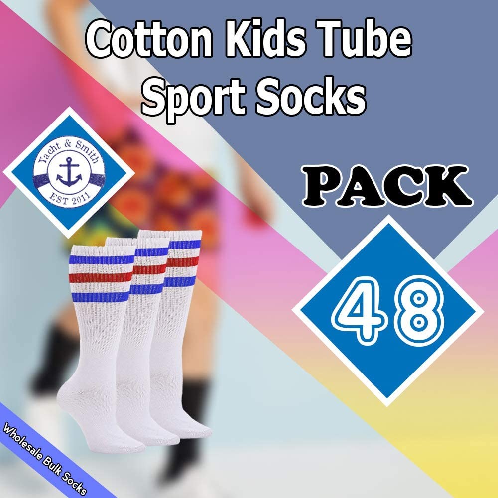 48 PK of Kids Cotton Tube Socks White With Stripes Size 4-6 - Boys Crew Sock