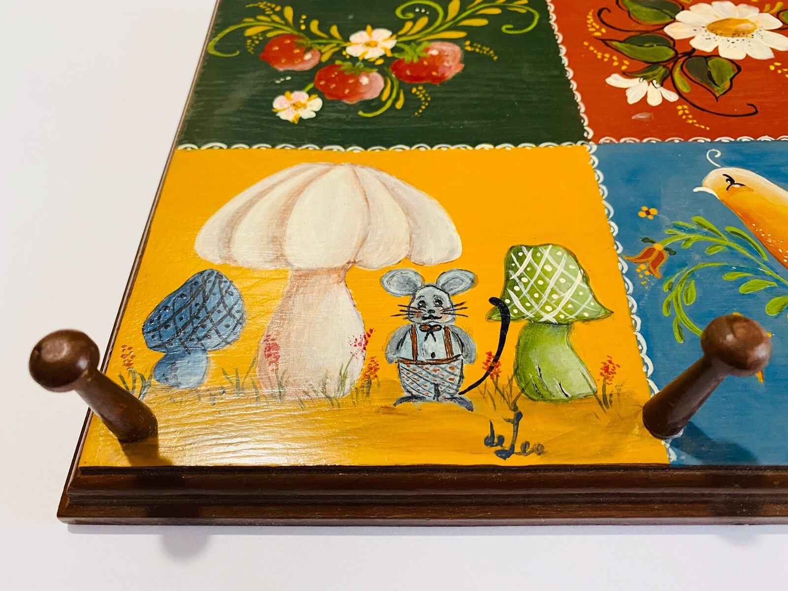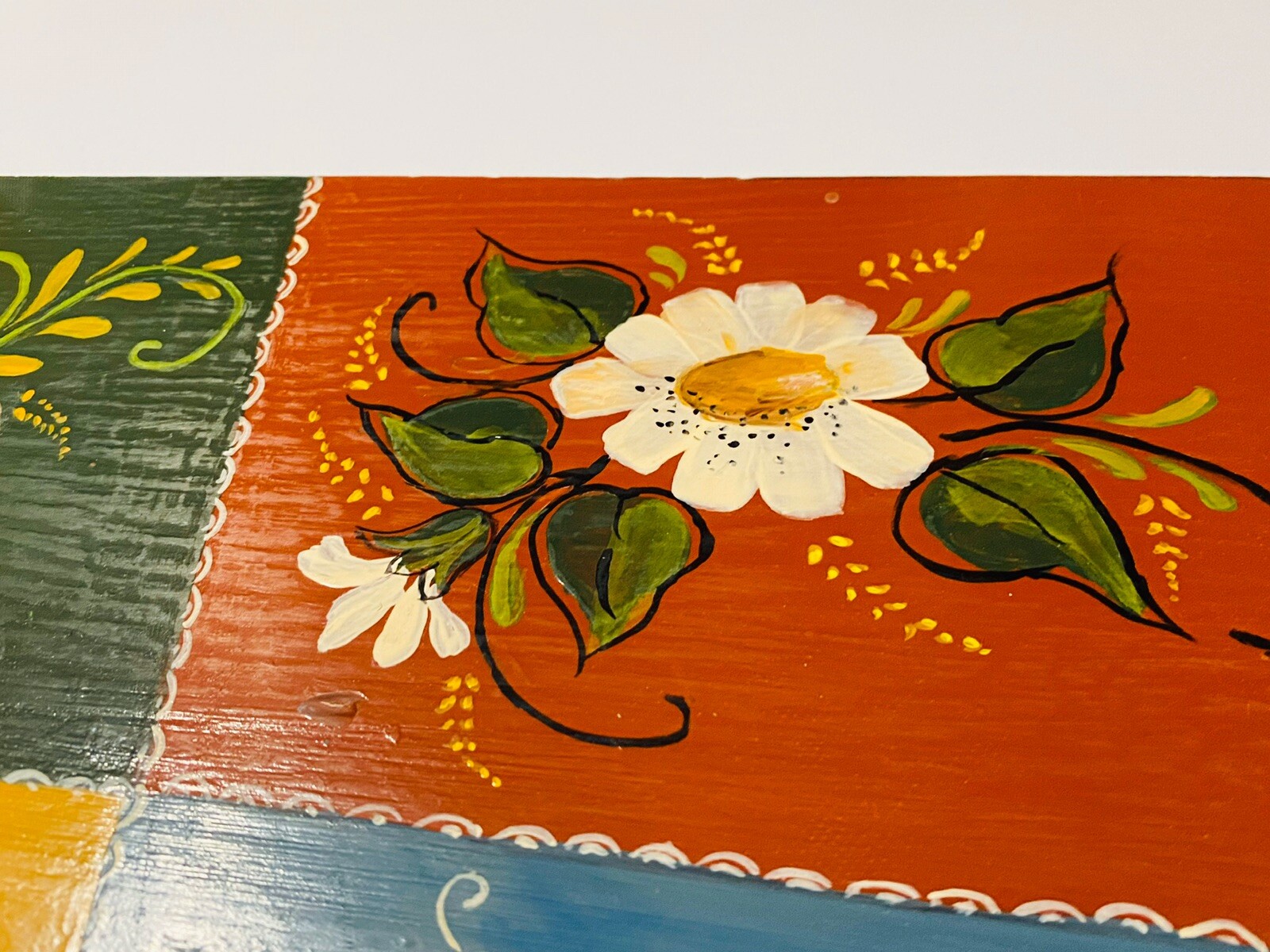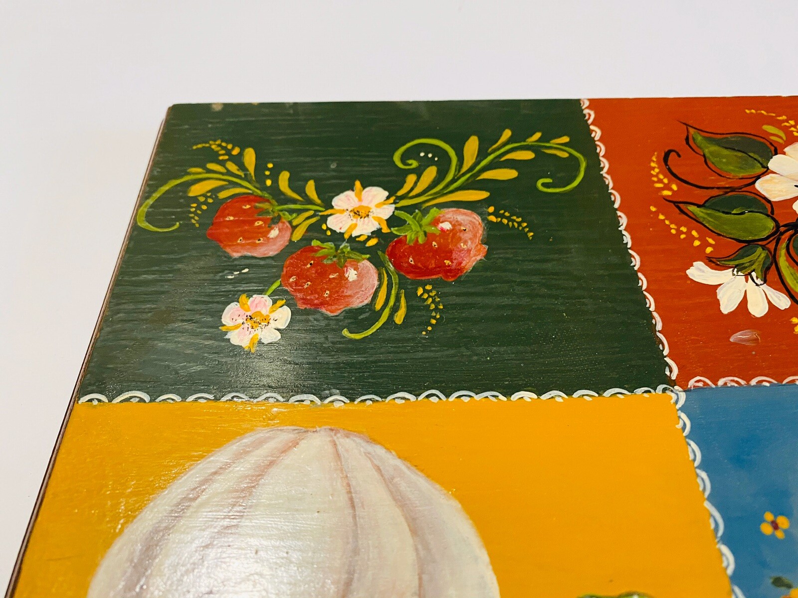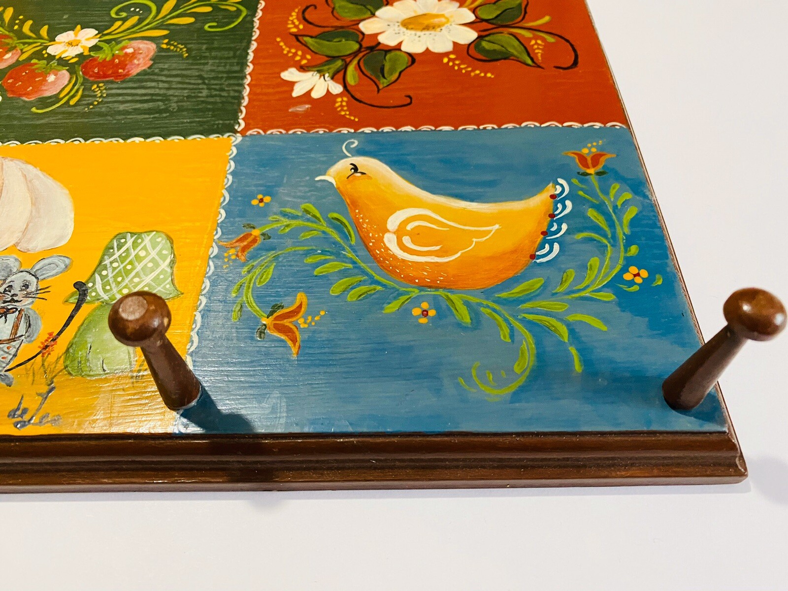 как выглядит Vintage Tole Hand Painted Wood Picture With 3 Hangers Signed Bird Daisy 9 X 11 фото
