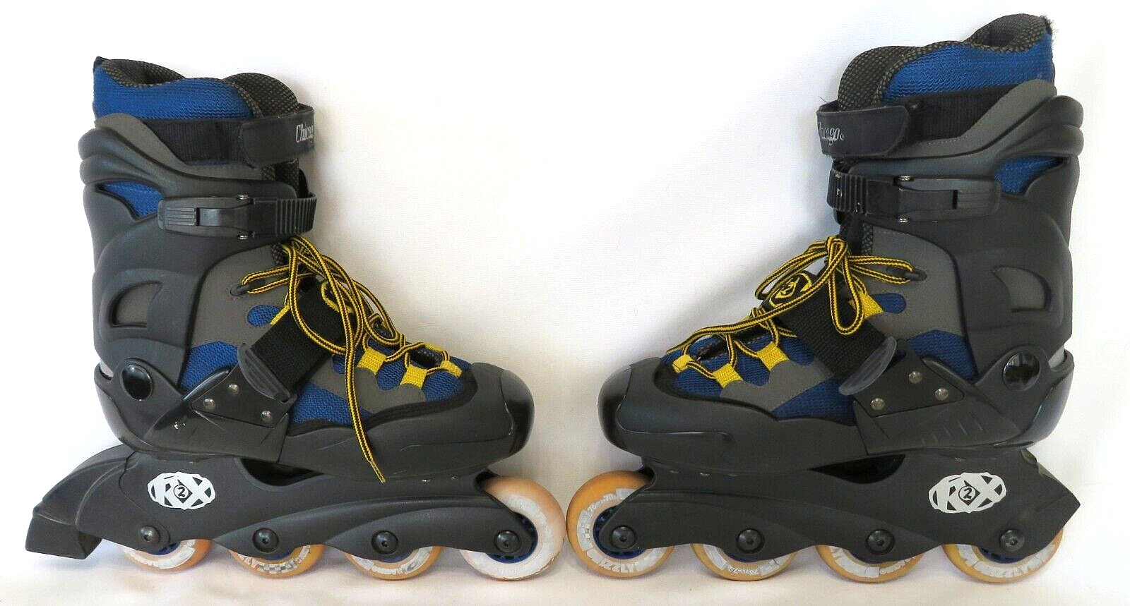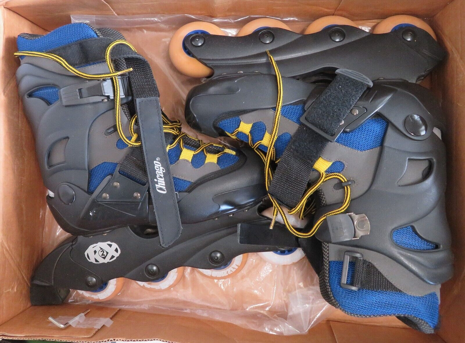 Vtg Unisex CHICAGO Inline Skates Size 6/8/39 IOB Black Blue w/PADS BEARINGS