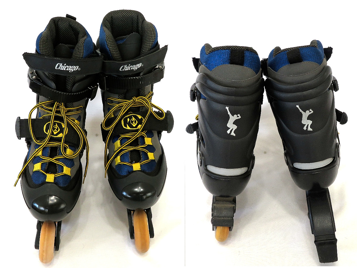 как выглядит Vtg Unisex CHICAGO Inline Skates Size 6/8/39 IOB Black Blue w/PADS BEARINGS фото