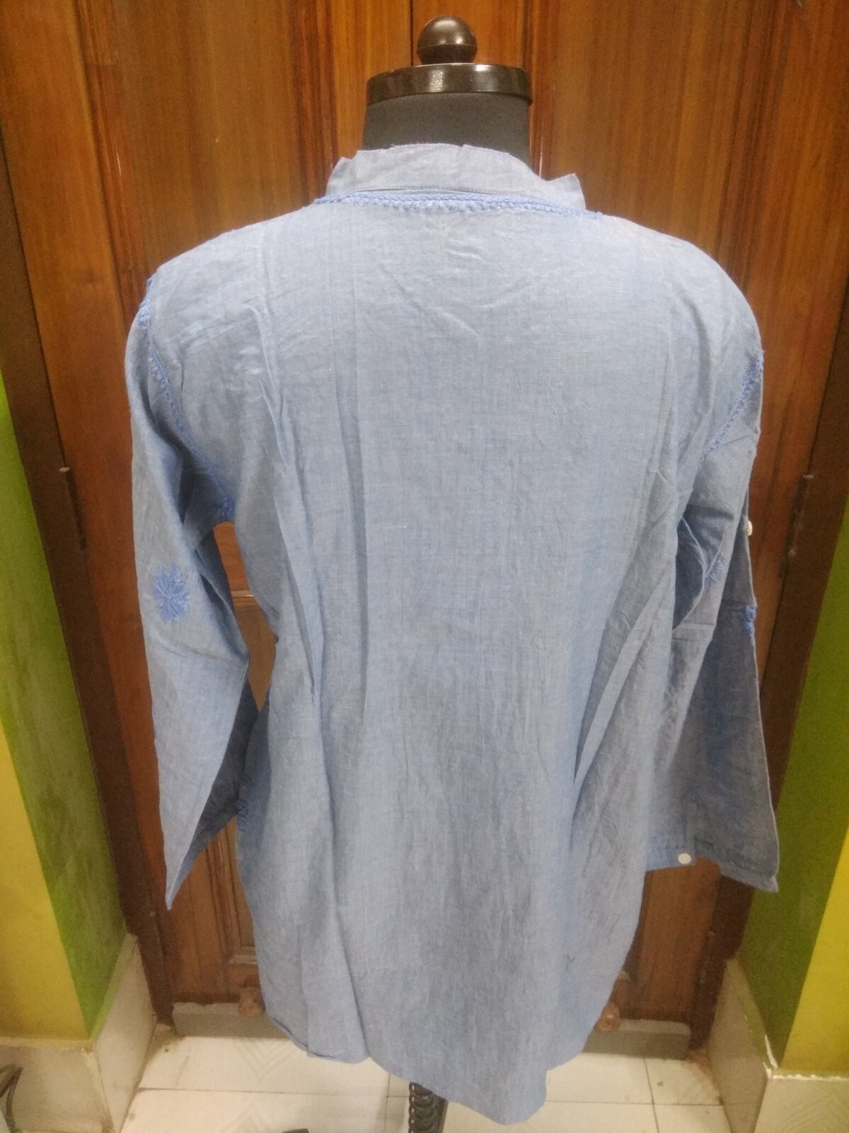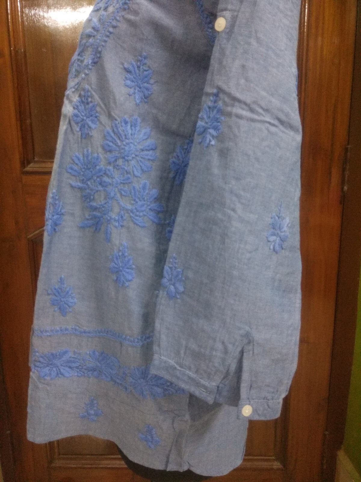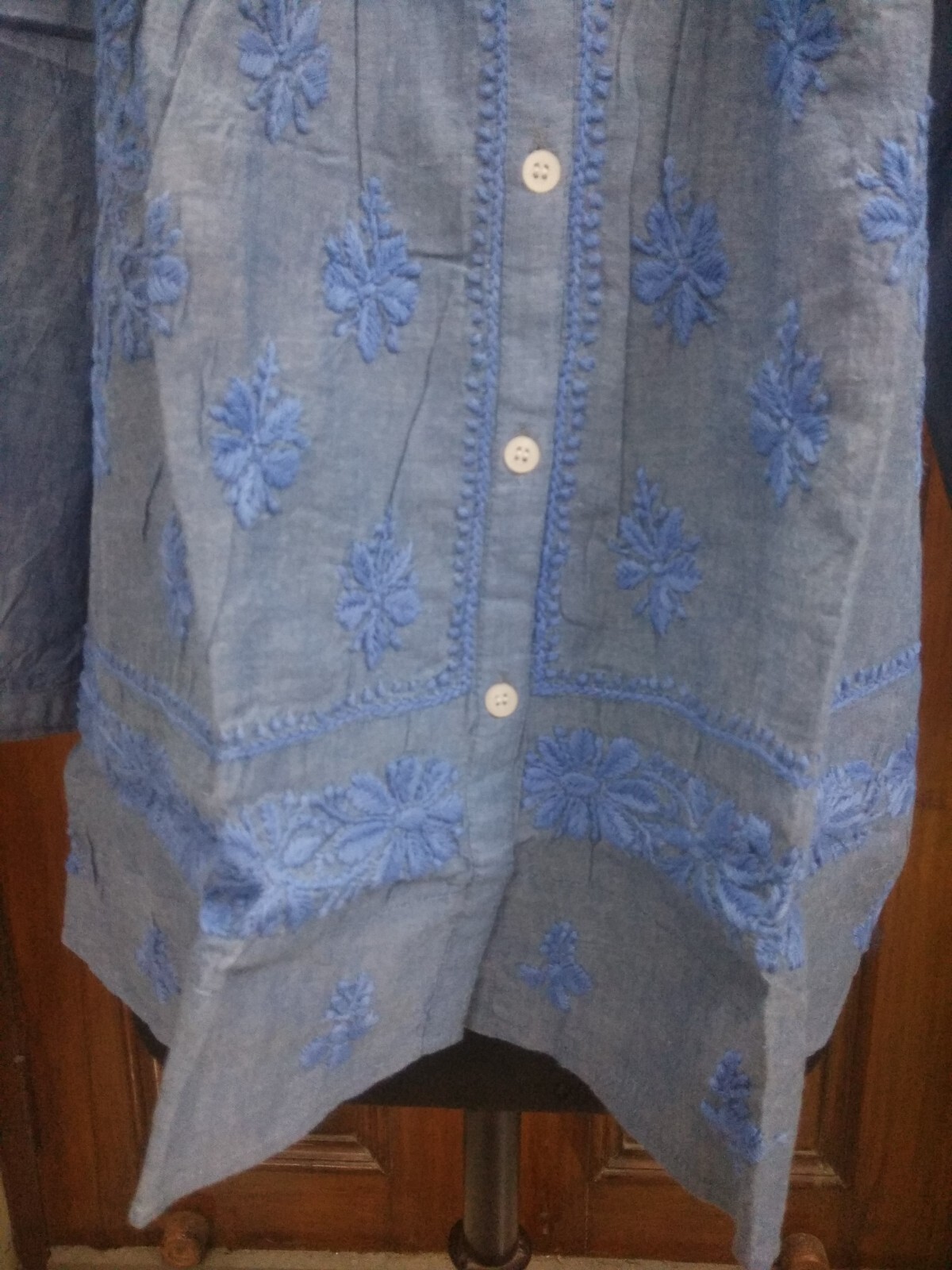 как выглядит L 3XL HANDMADE CHIKAN EMBROIDERY ETHNIC DENIM 100 COTTON TOP KURTA KURTI TUNIC фото