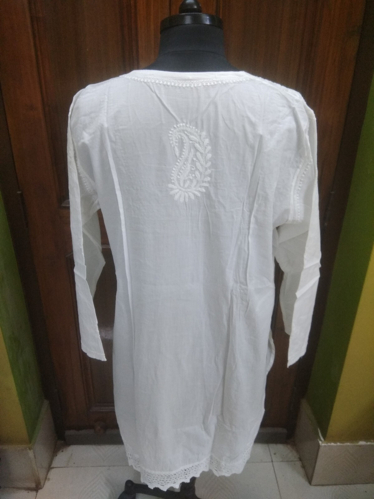 как выглядит M 40" HANDMADE TOP TUNIC ETHNIC CHIKAN EMBROIDERY 100 COTTON BLOUSE KURTI KURTA фото