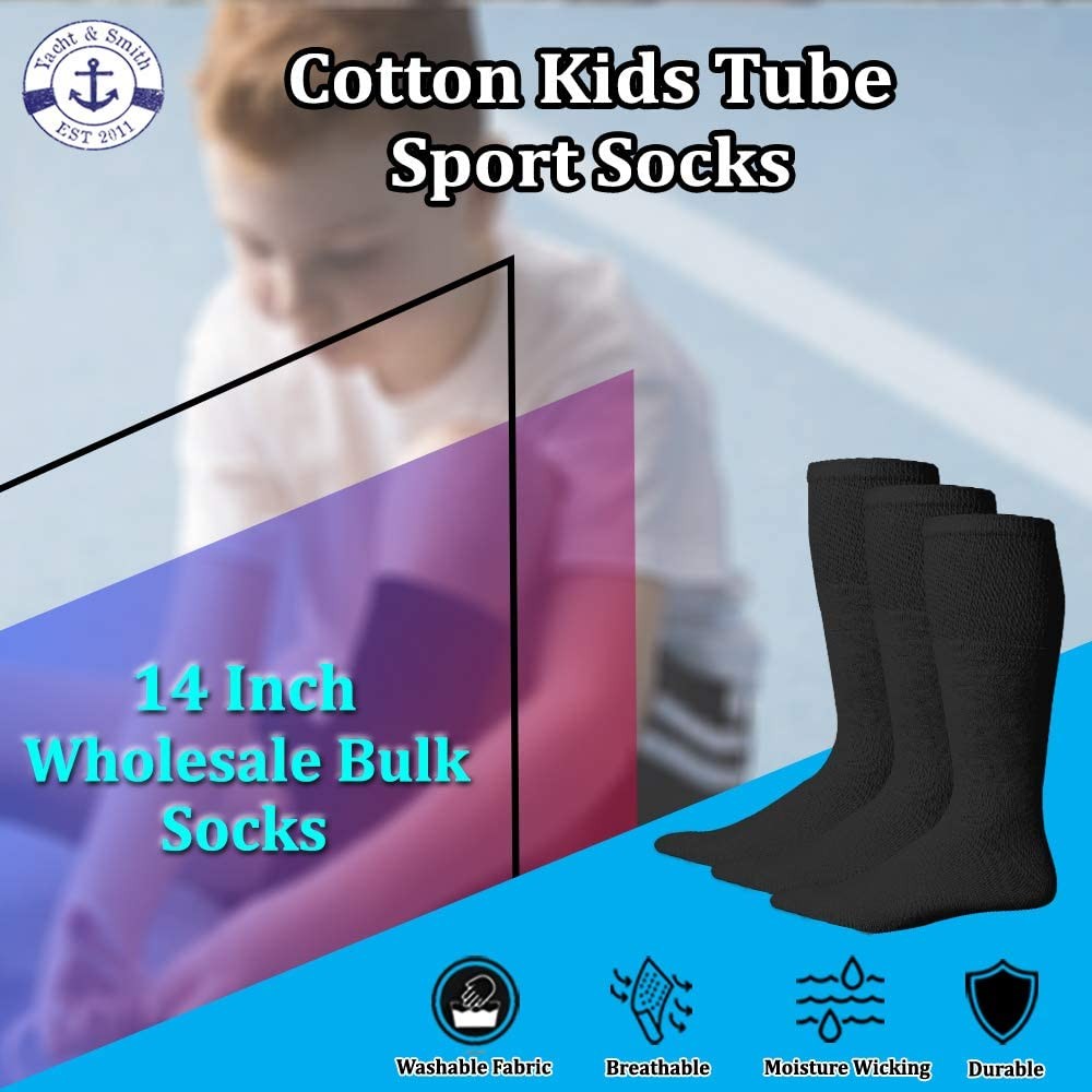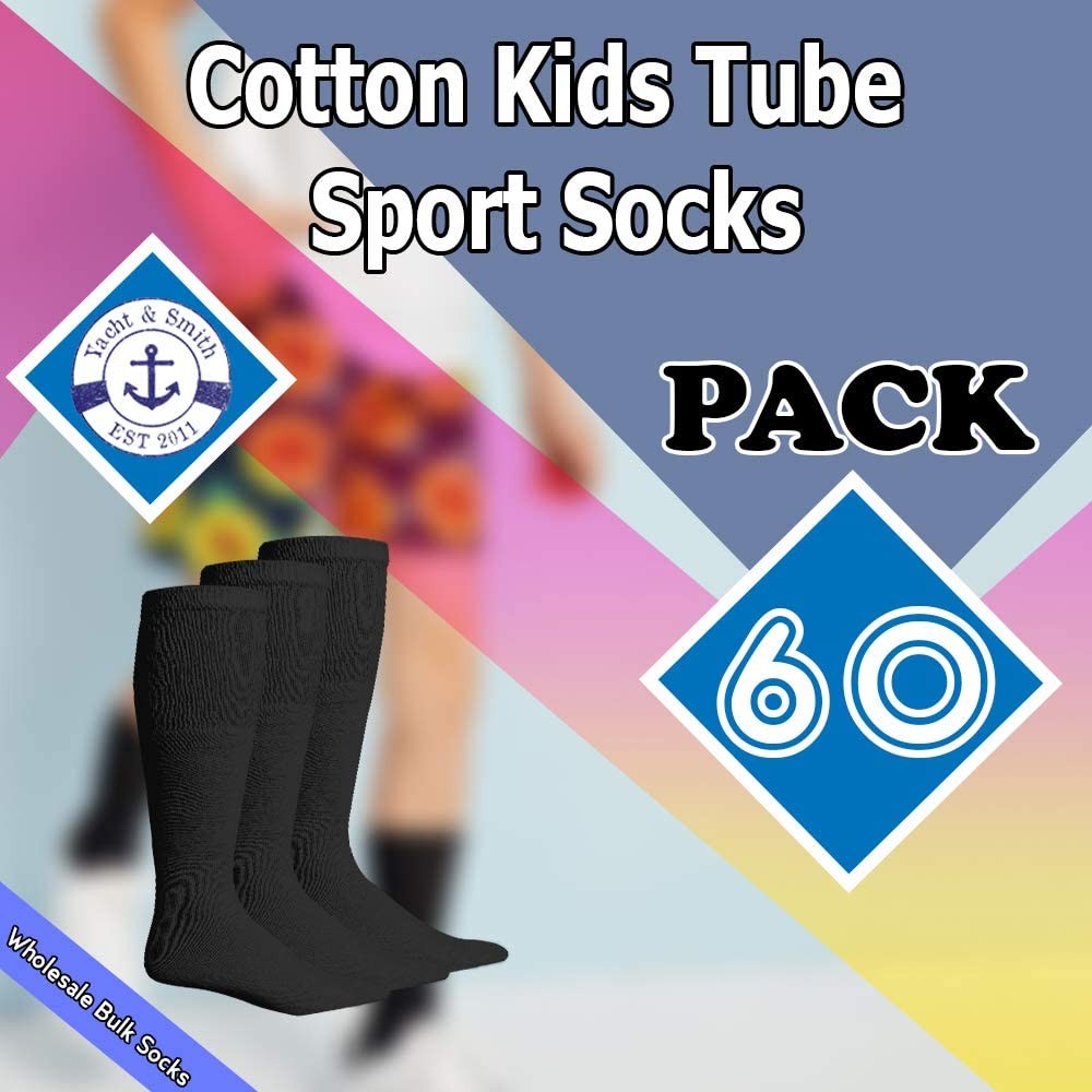 60 Pack of Yacht Smith Kids Black Solid Tube Socks Size 4-6 - Boys Crew Sock