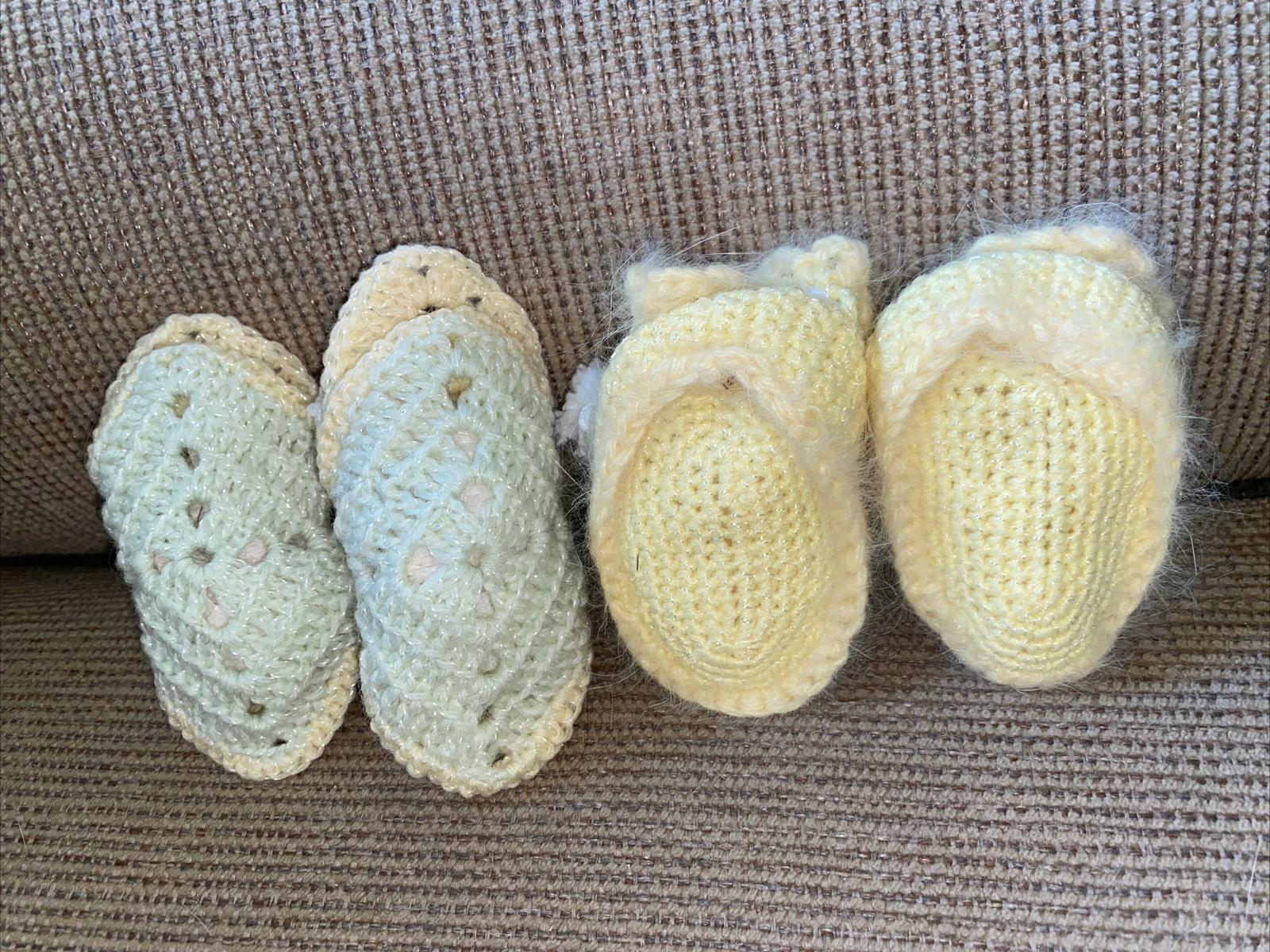 как выглядит PRECIOUS Set Of 2 Vintage Hand Knitted Baby Booties / Closed Peek-a-boo Toe фото