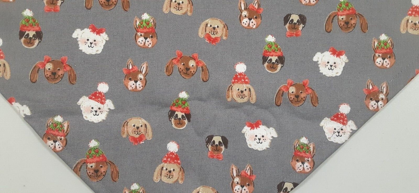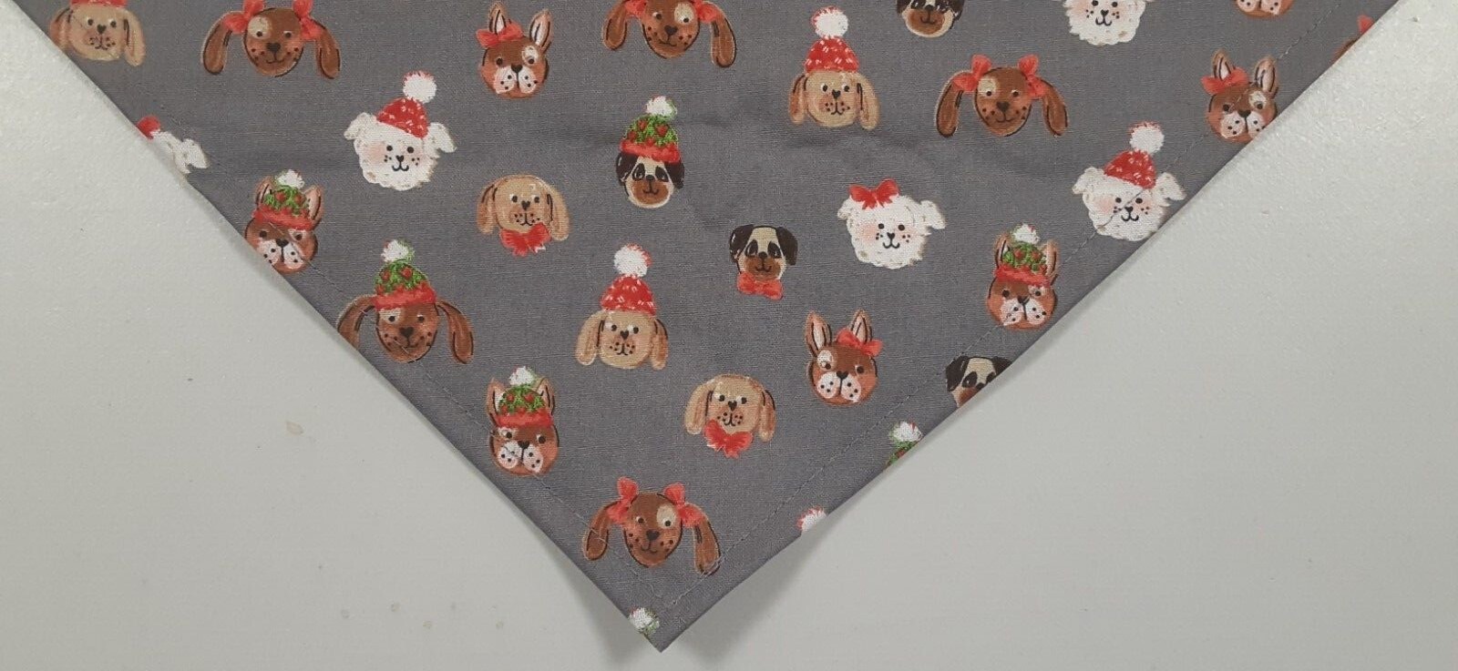 Buster Brown Dog Bandana, Scarf, Tie On, Christmas, Dogs, Hats, Bows, Gray, M